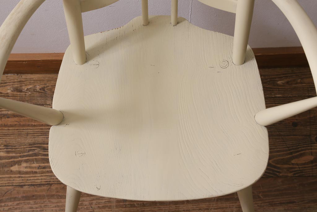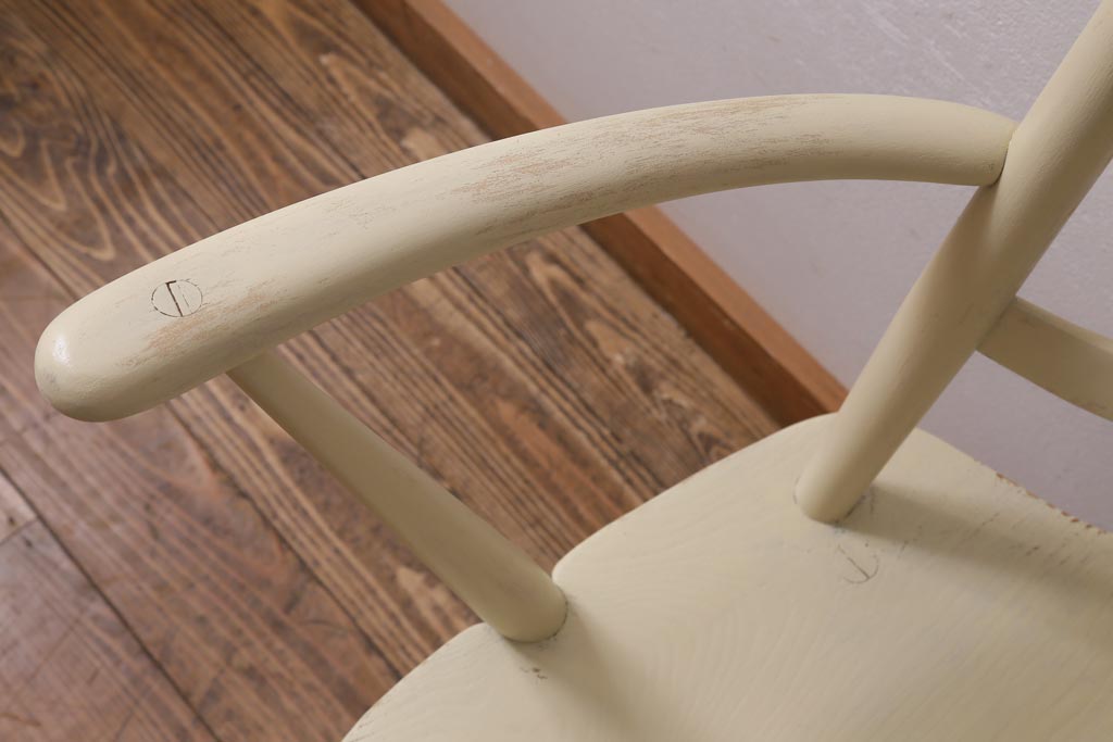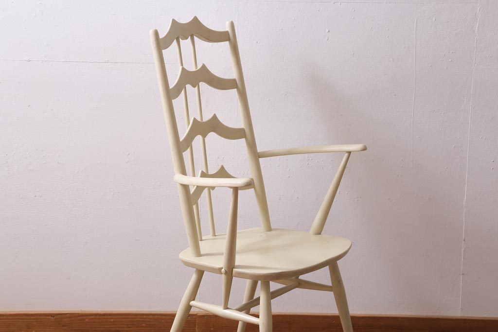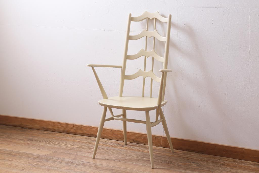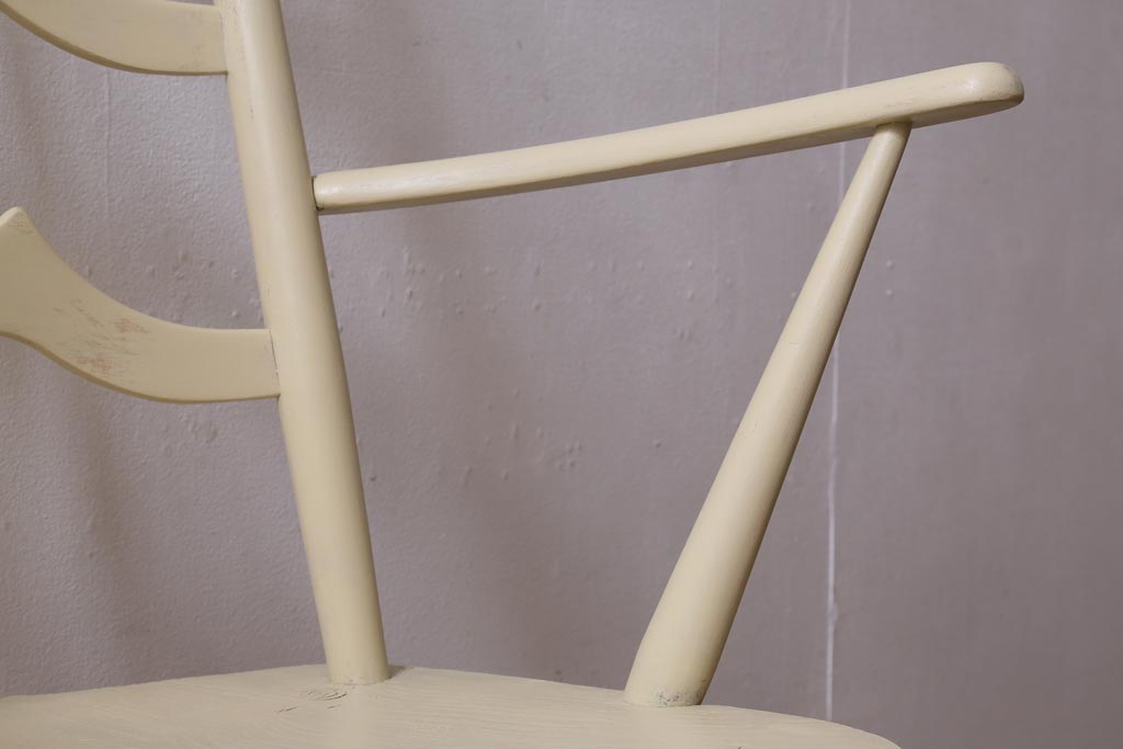 椅子・ベンチ> ダイニングチェア > ヴィンテージ家具 イギリスビンテージ ERCOL(アーコール) アンティークペイント 希少!洗練された佇まいのラダーバックアームチェア(ダイニングチェア、椅子)(R-038911)