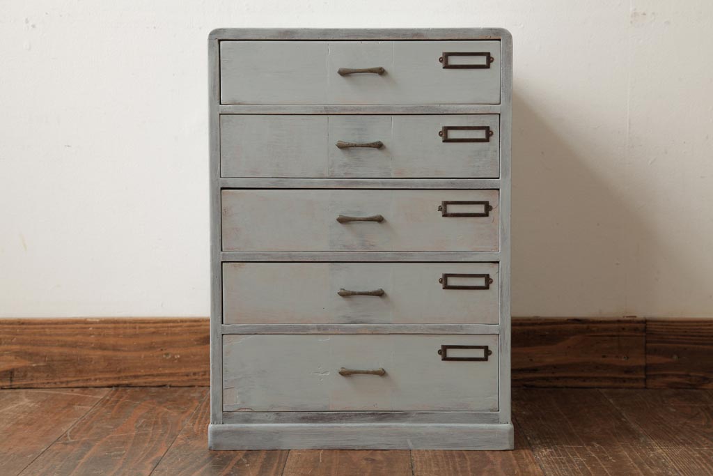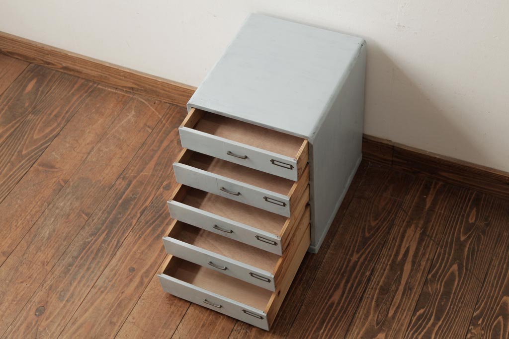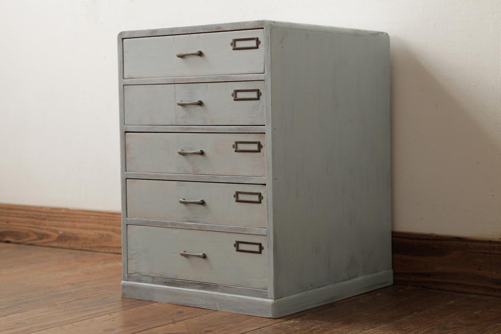 ペイント家具 和製ビンテージ 昭和中期 シャビーなペイントが魅力の小引き出し(小物収納、卓上収納、ドロワー)(R-038891)