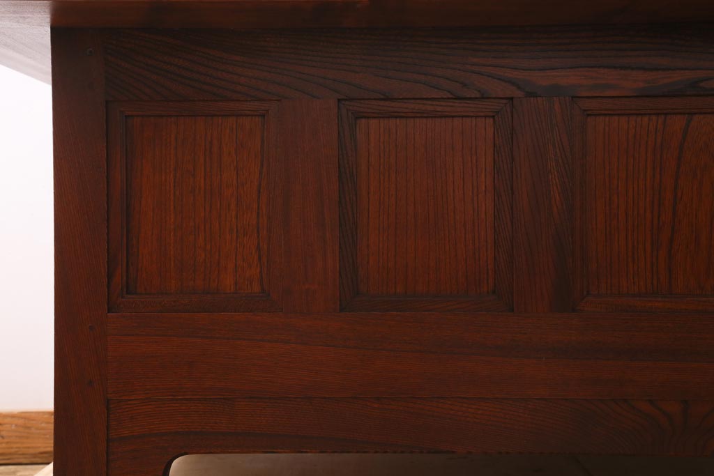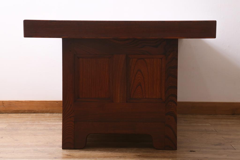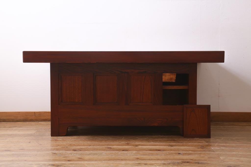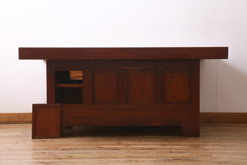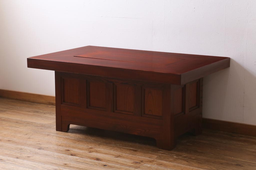 ラフジュ工房> 民芸家具 > 中古 松本民芸家具 激レア! 総欅材 漆塗り かくし収納付きA型洋炉卓(木製火鉢、囲炉裏、テーブル)(定価約100万円)(R-038992)
