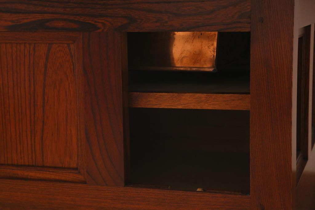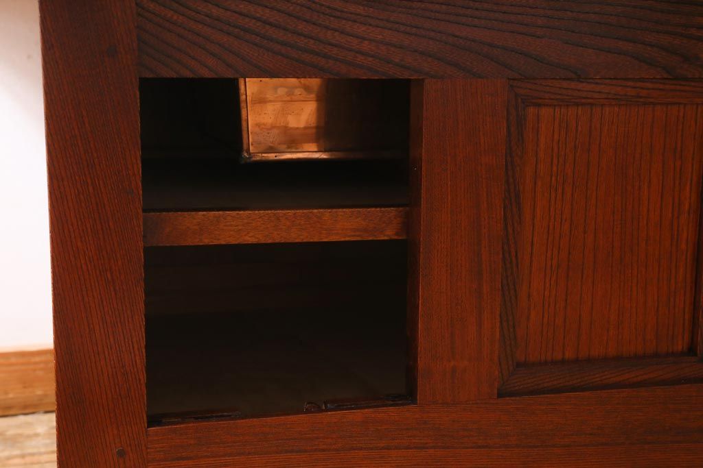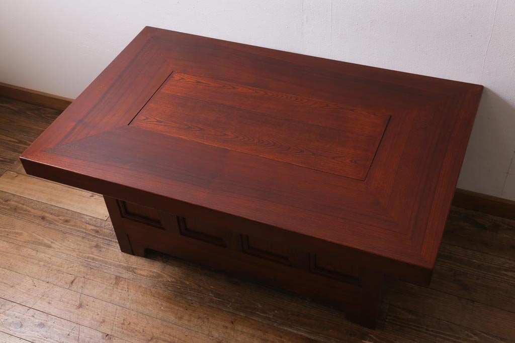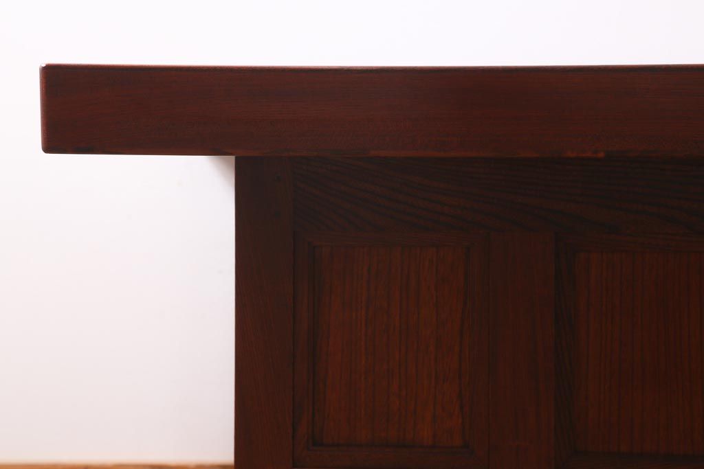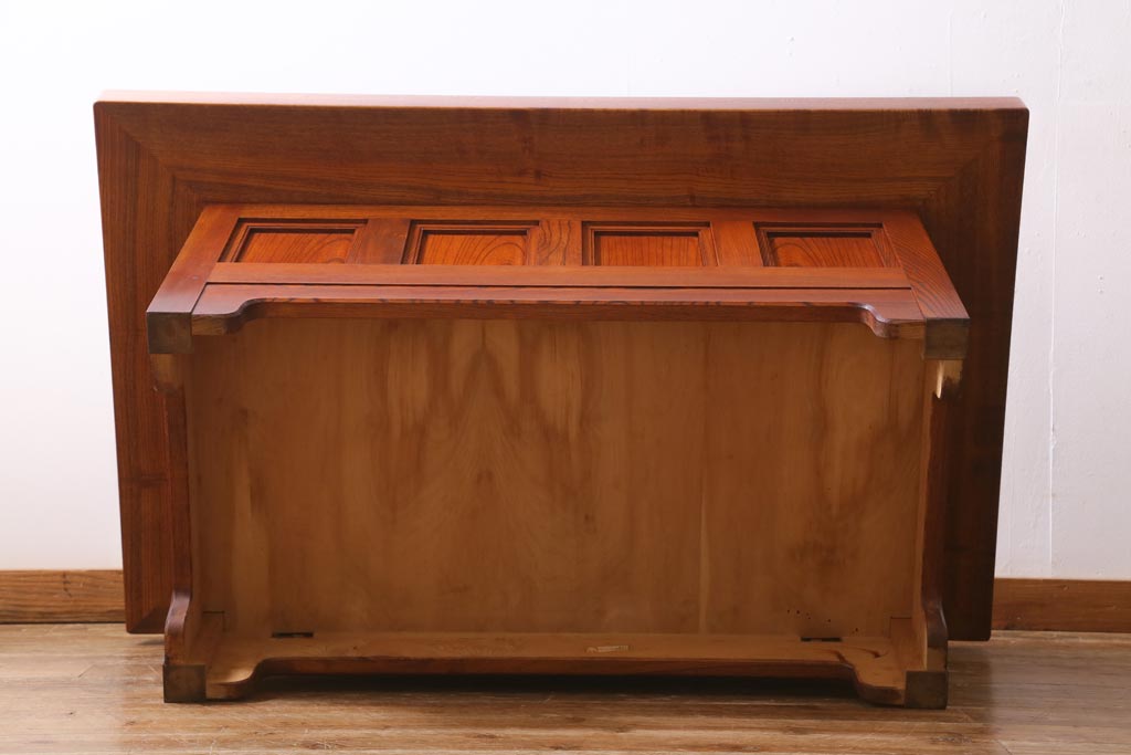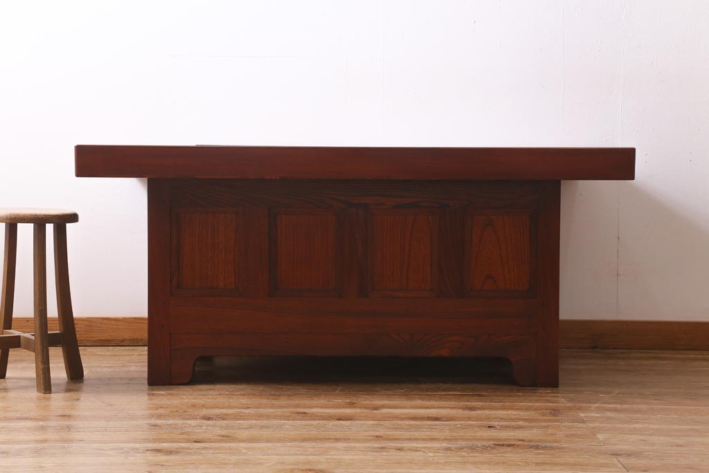 ラフジュ工房> 民芸家具 > 中古 松本民芸家具 激レア! 総欅材 漆塗り かくし収納付きA型洋炉卓(木製火鉢、囲炉裏、テーブル)(定価約100万円)(R-038992)