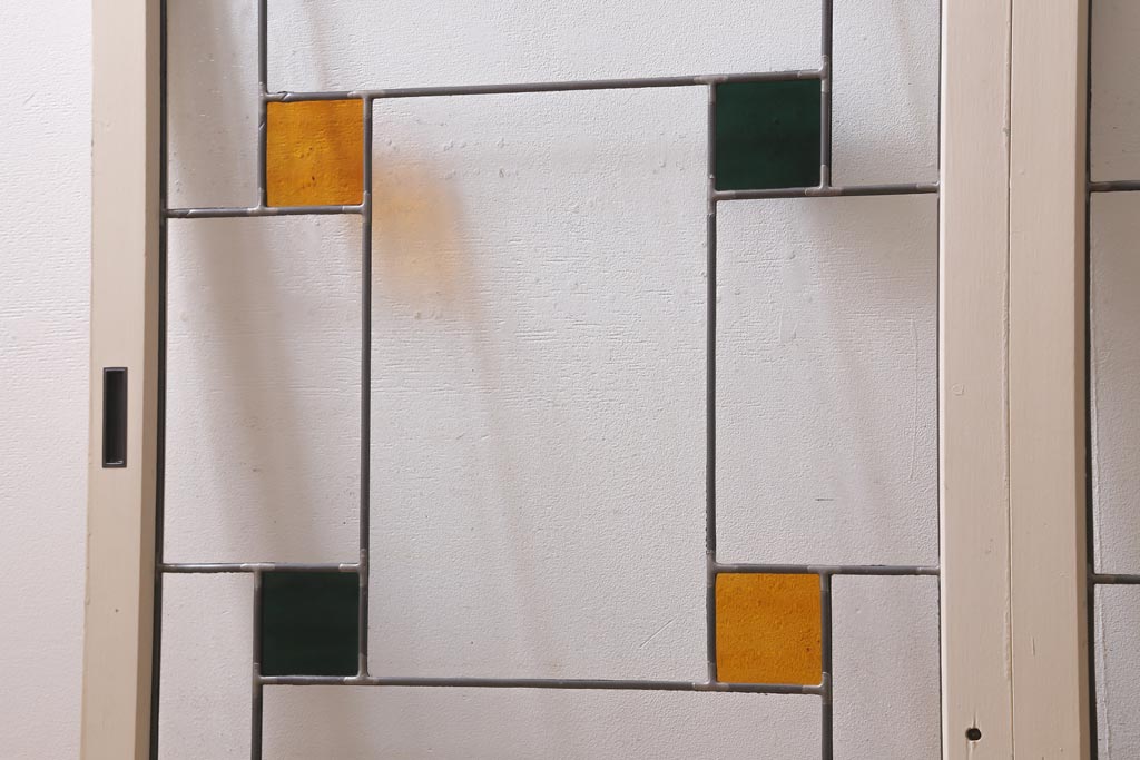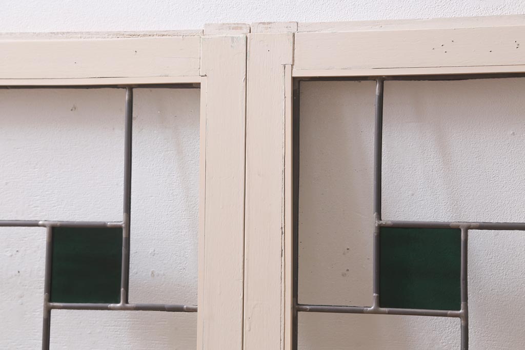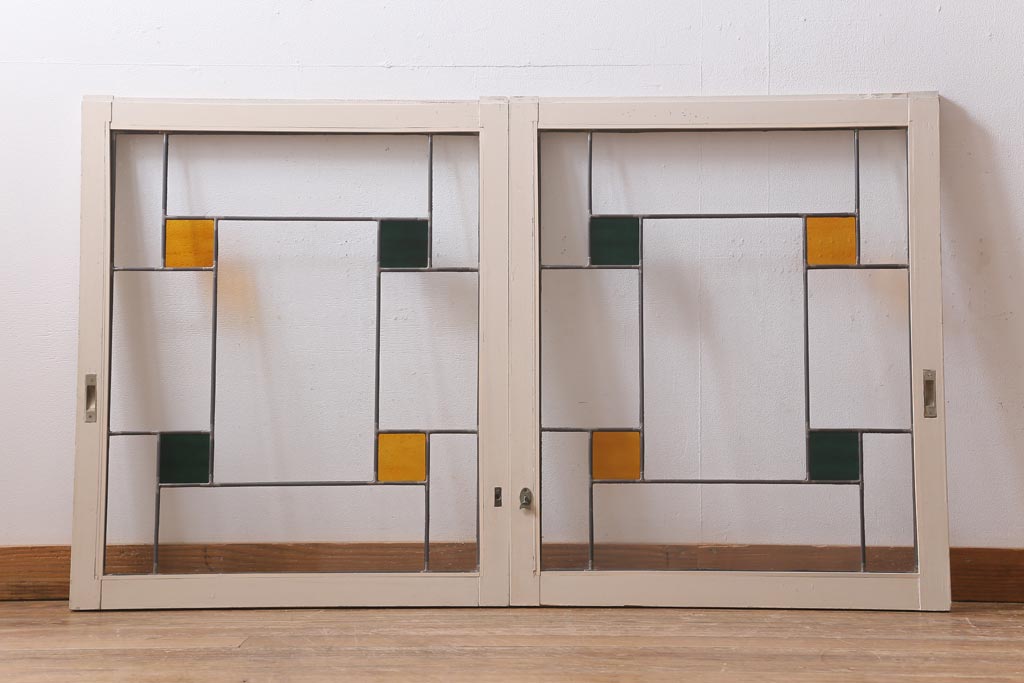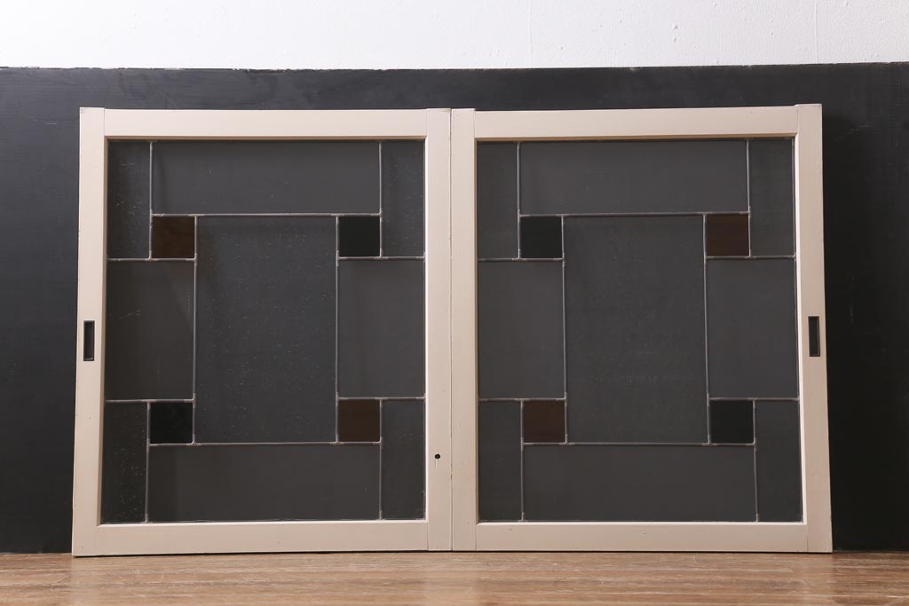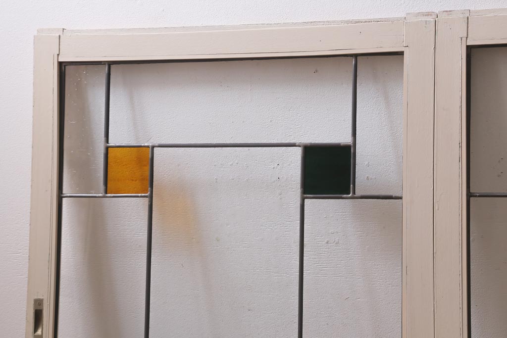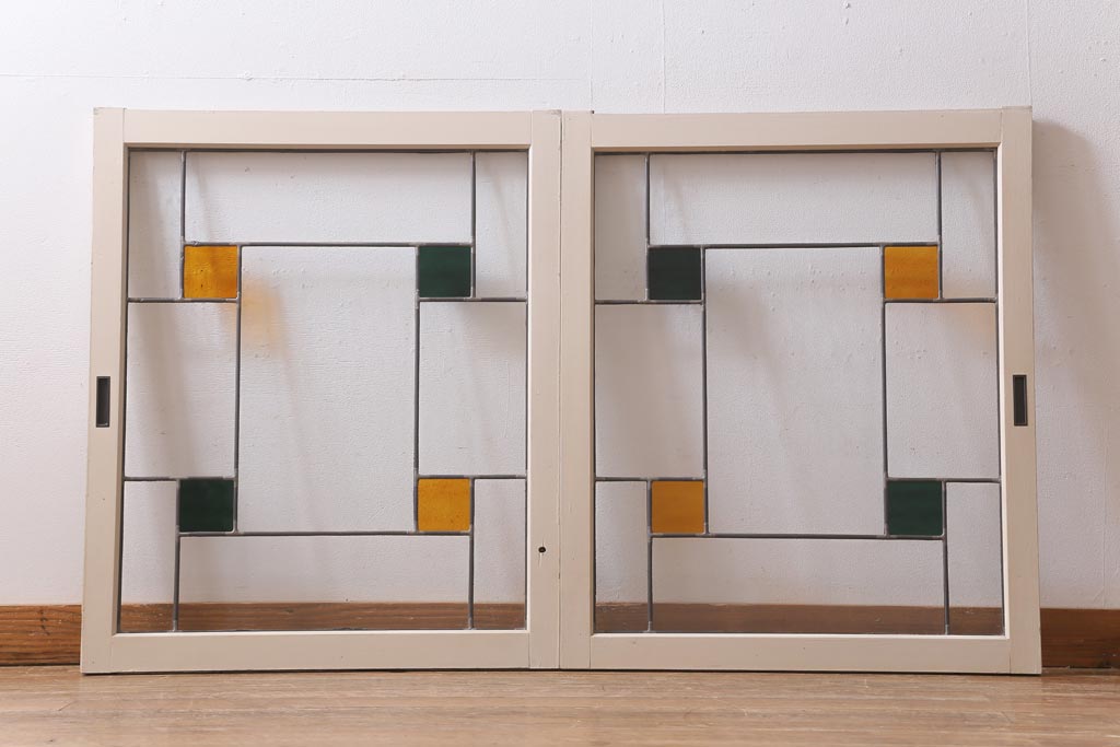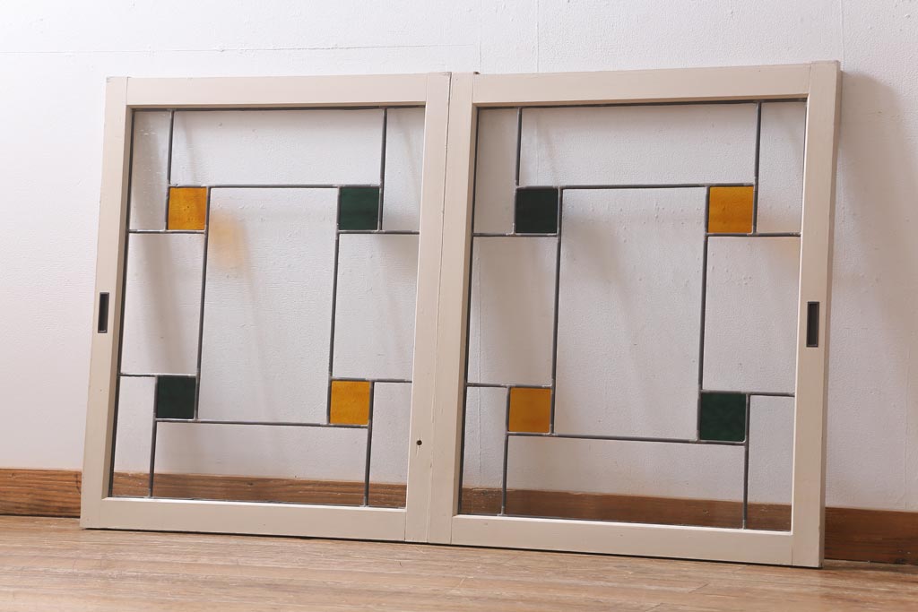 アンティーク建具 和製アンティーク ステンドグラスがレトロなガラス戸2枚セット(窓、建具)(R-038886)
