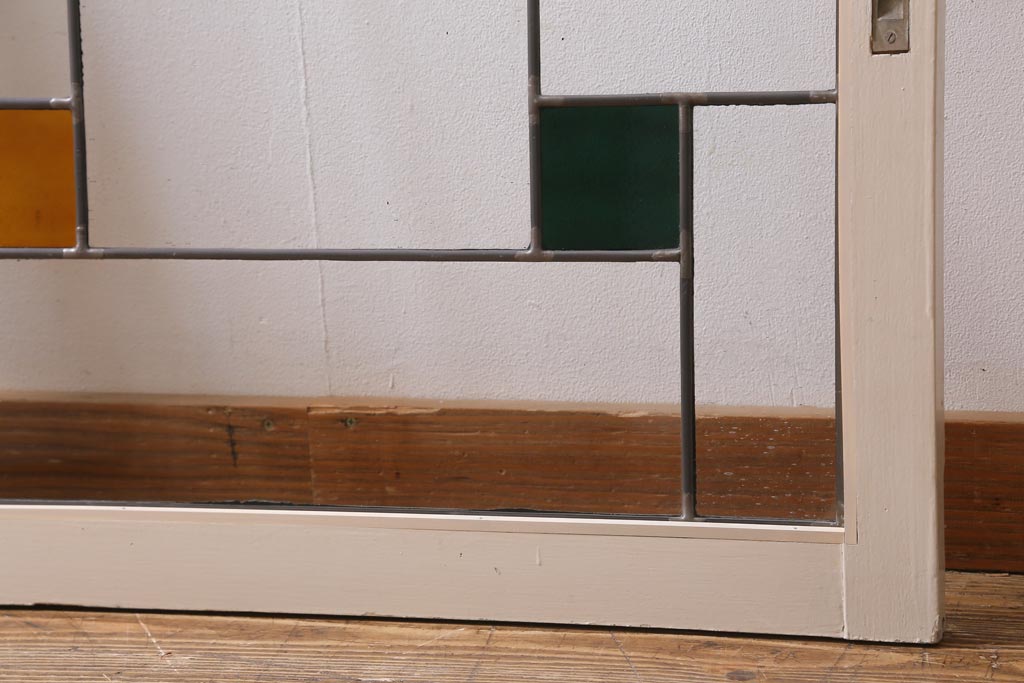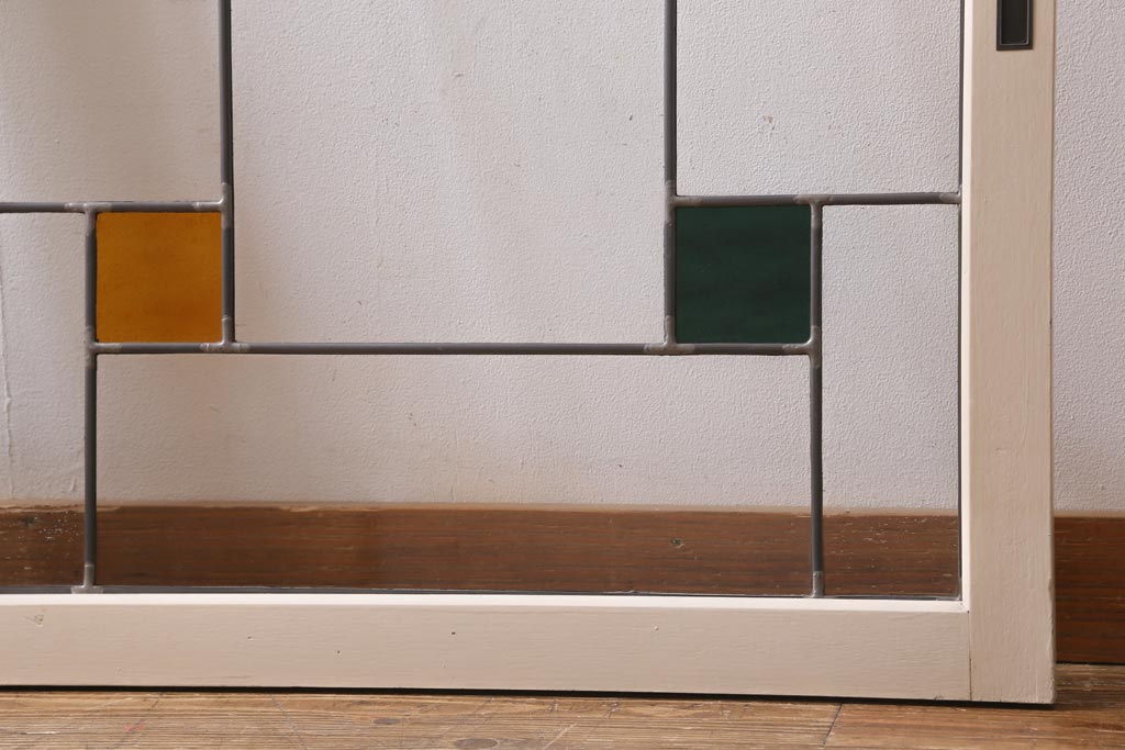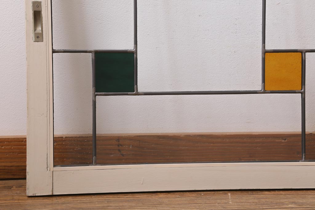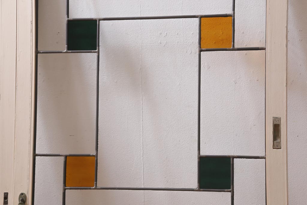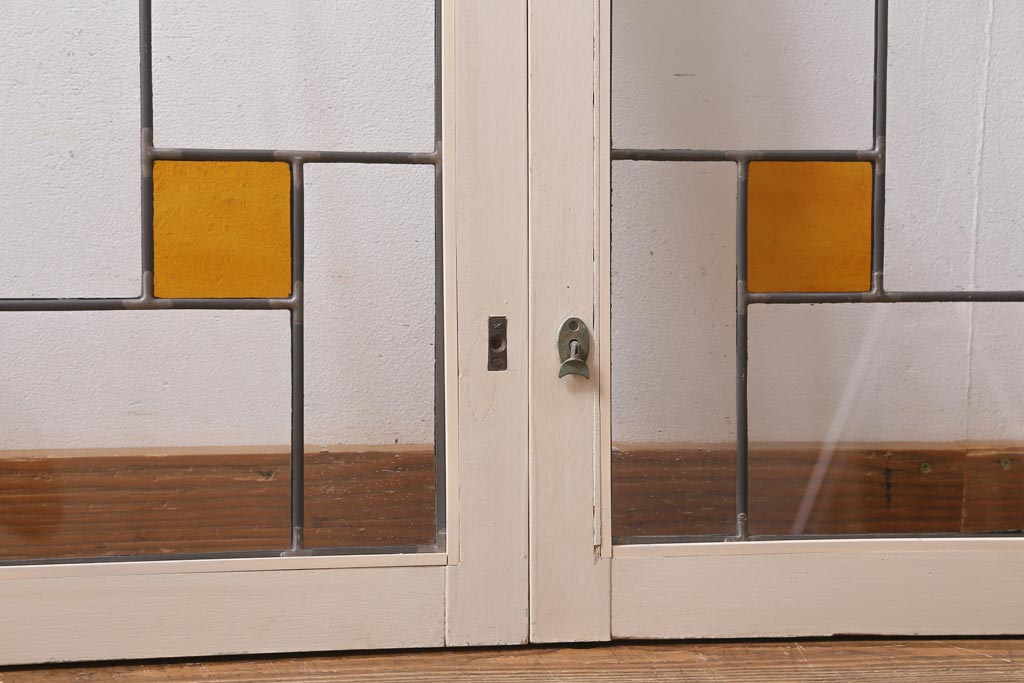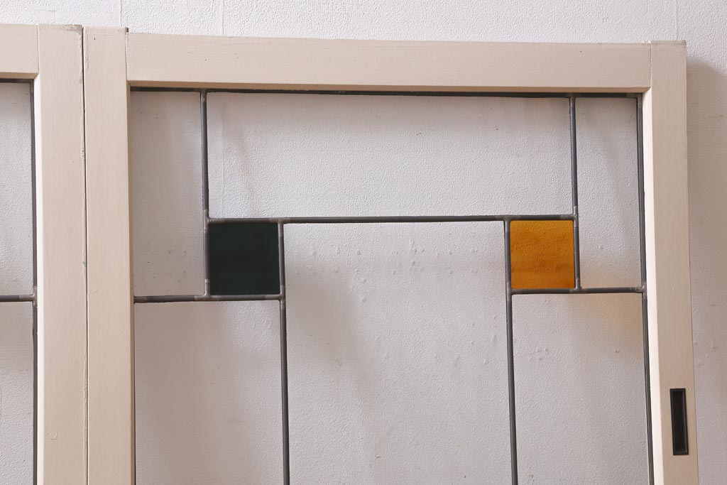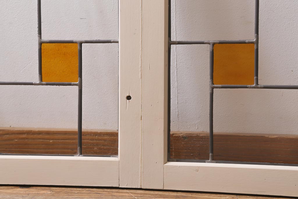 アンティーク建具 和製アンティーク ステンドグラスがレトロなガラス戸2枚セット(窓、建具)(R-038886)
