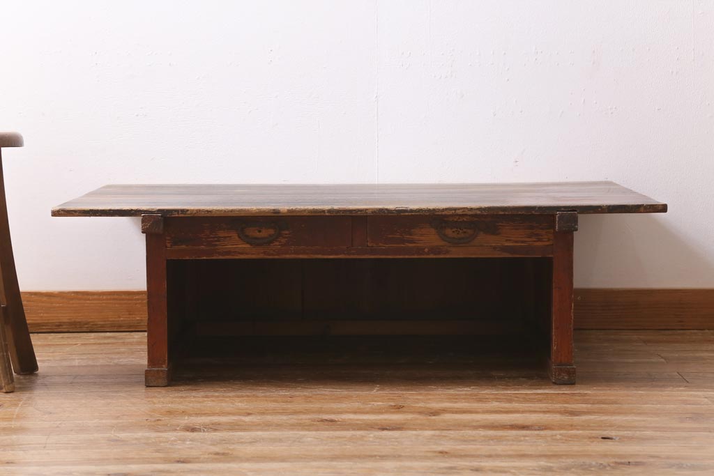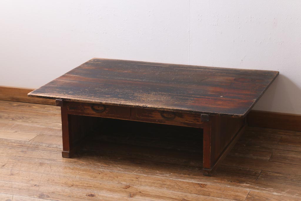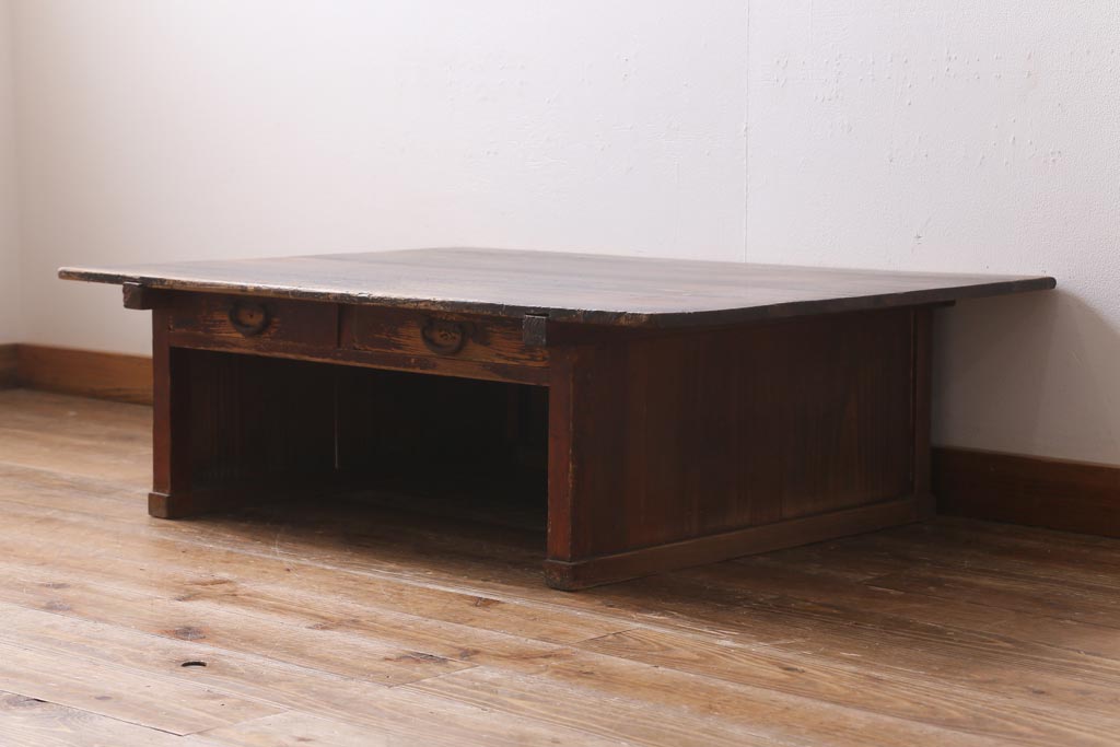 アンティーク家具 大正昭和初期 使いこまれた木の風合いが魅力の大振りな文机(ローテーブル、座卓)(R-039047)