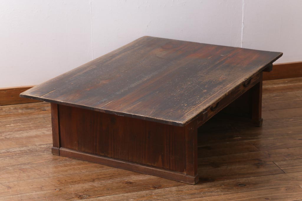 テーブル> 座卓 > アンティーク家具 大正昭和初期 使いこまれた木の風合いが魅力の大振りな文机(ローテーブル、座卓)(R-039047)