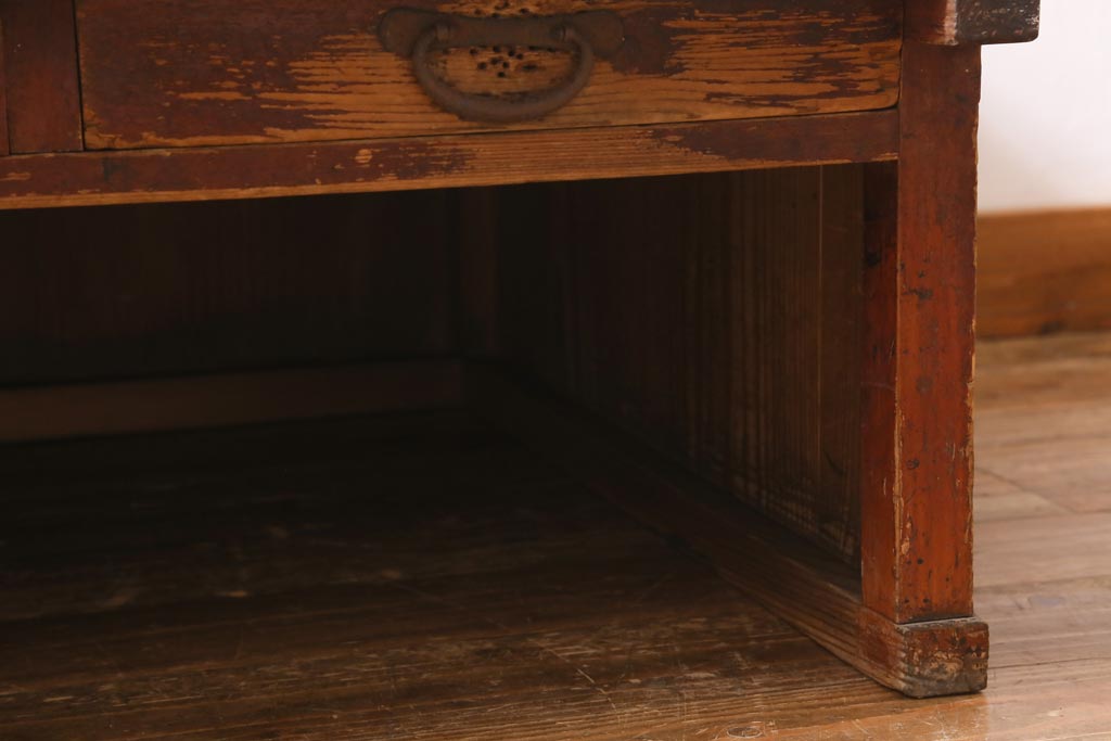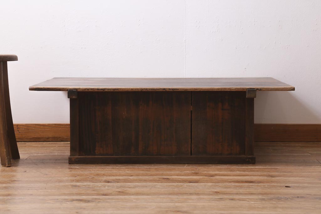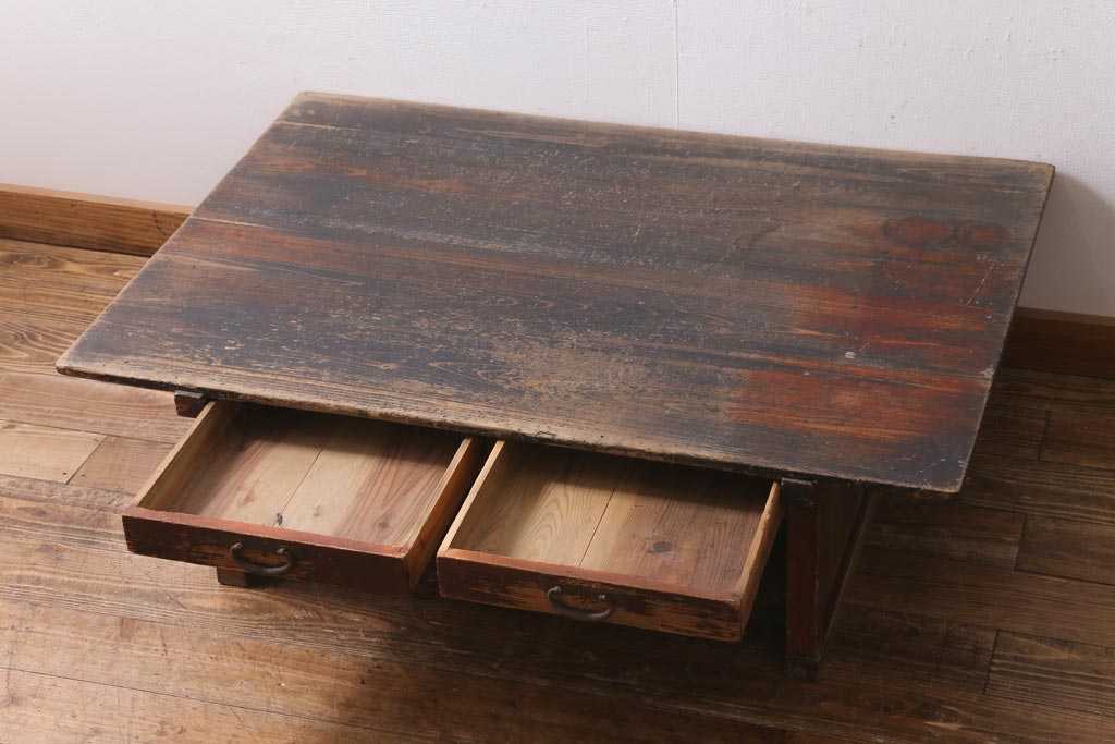 デスク> 文机・座机 > アンティーク家具 大正昭和初期 使いこまれた木の風合いが魅力の大振りな文机(ローテーブル、座卓)(R-039047)