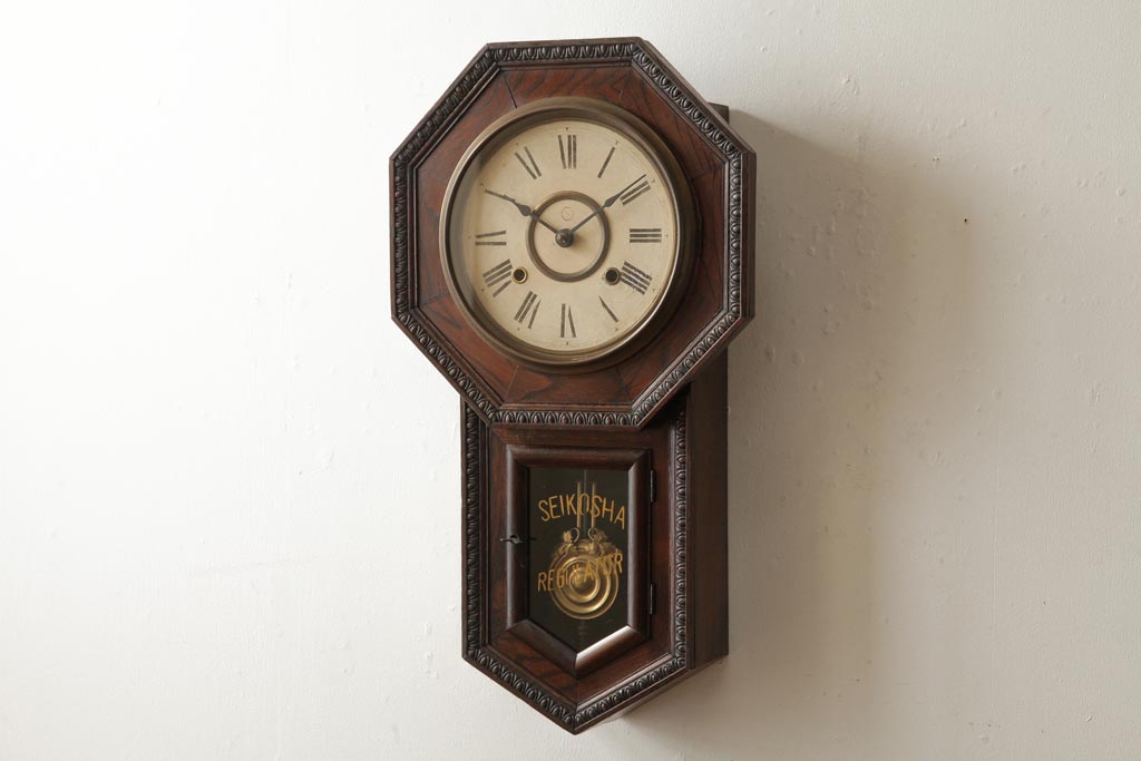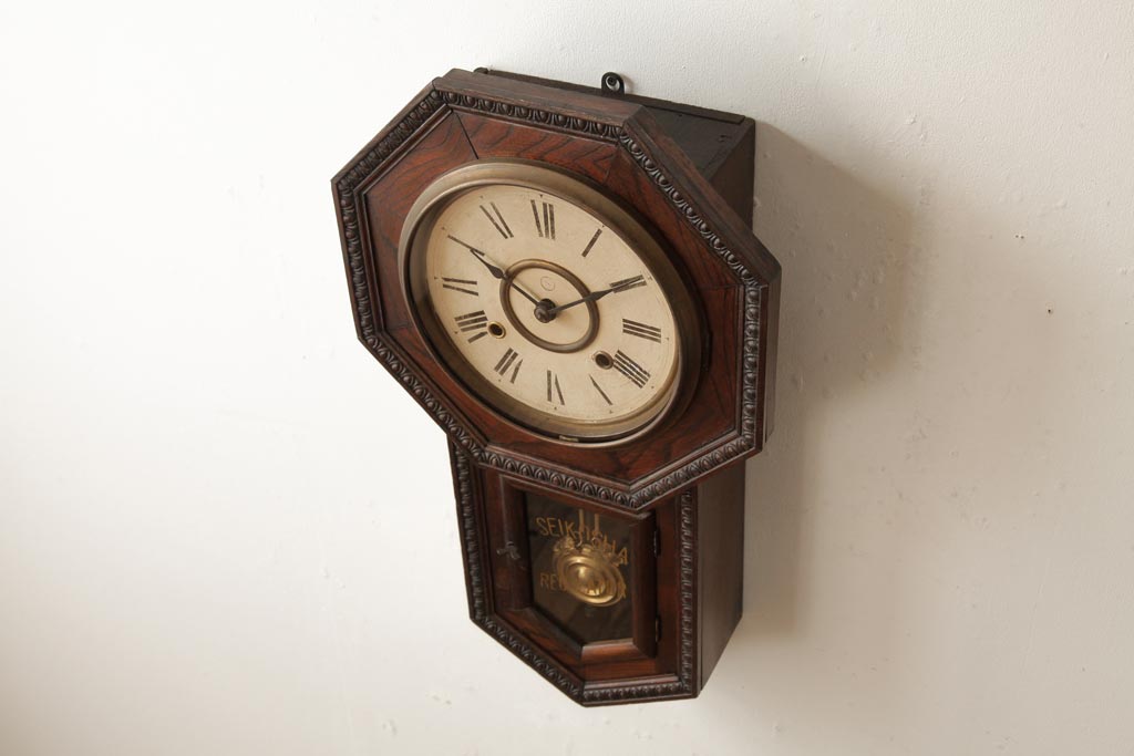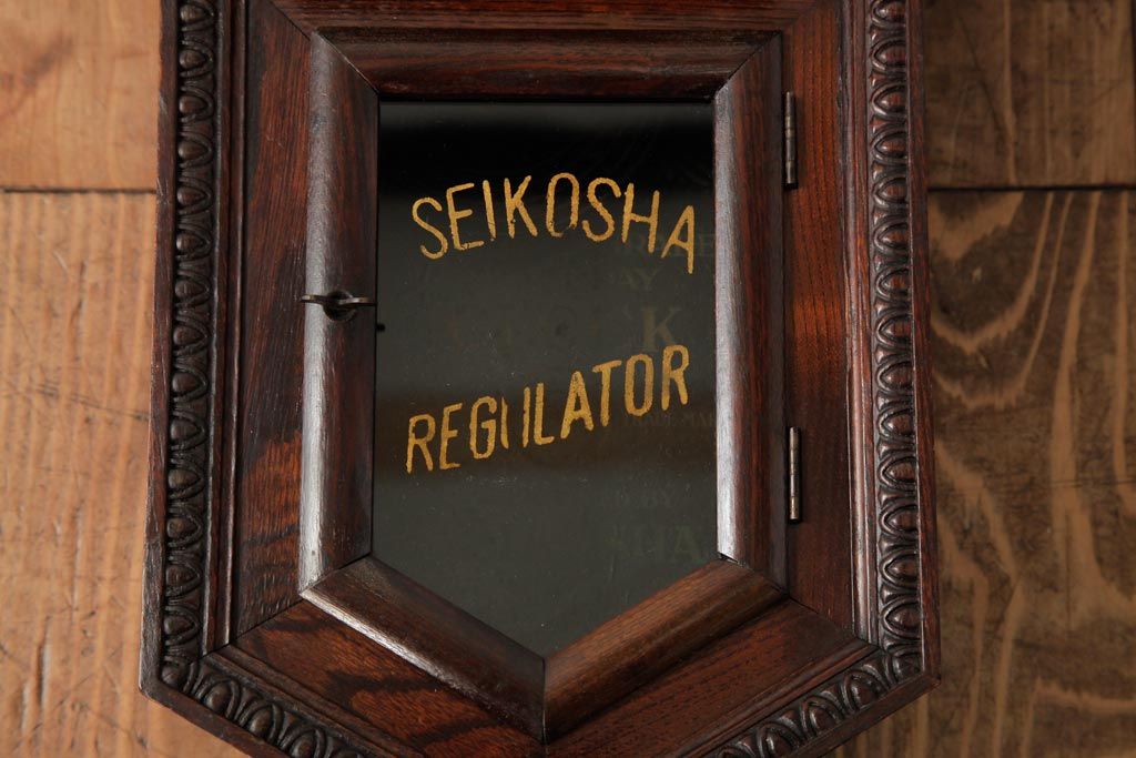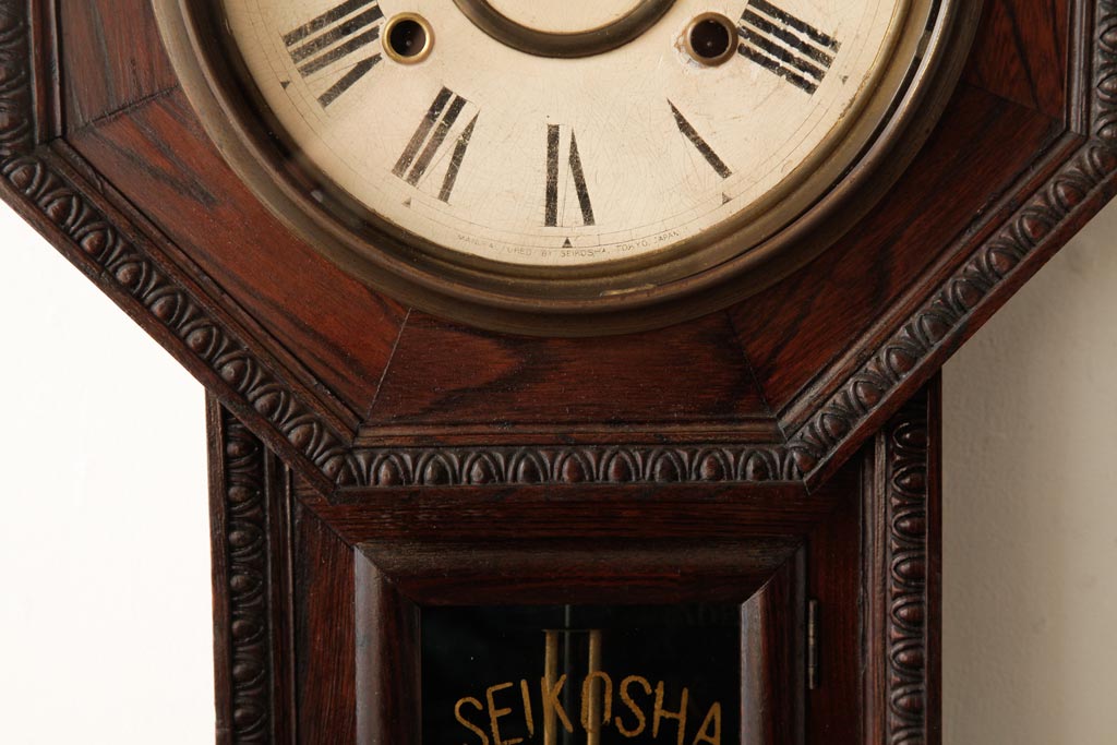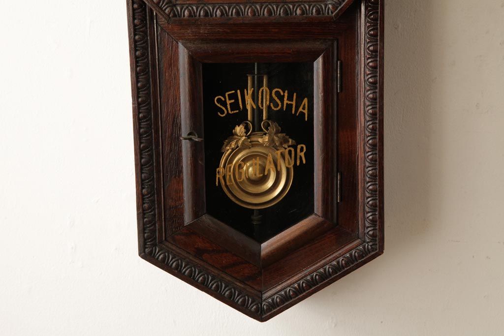 時計> 掛け時計 > アンティーク雑貨 精工舎(SEIKOSHA、セイコー) 8DAY 浮き彫りがクラシカルなゼンマイ式柱時計(掛け時計、振り子時計)(R-039083)