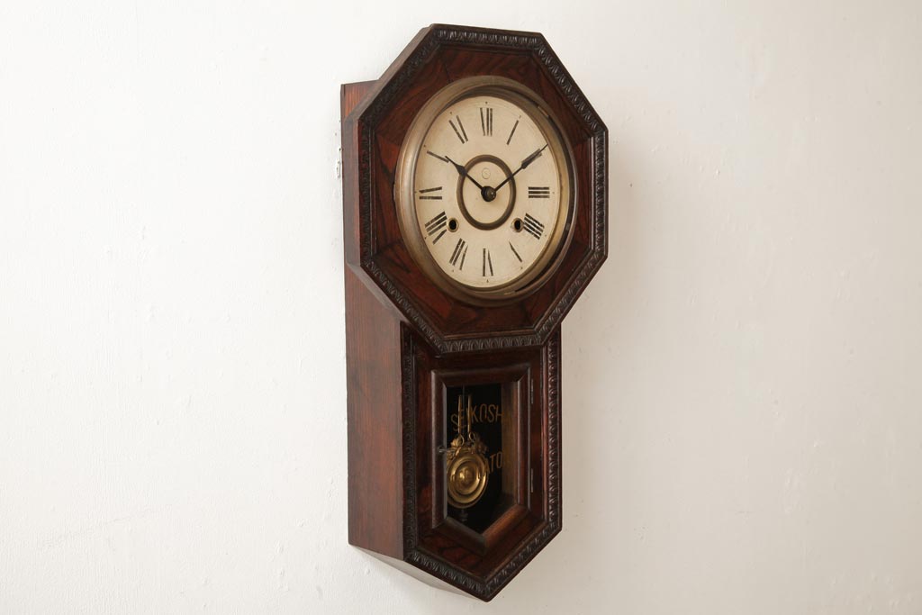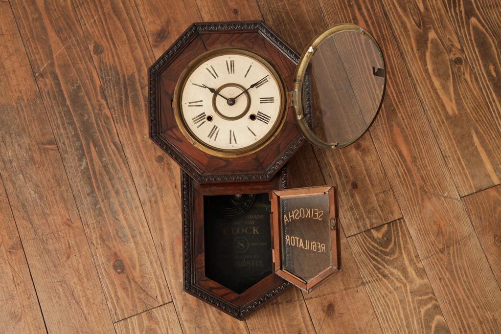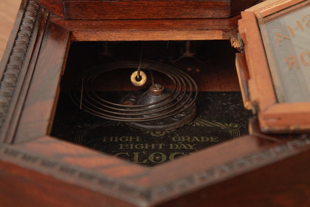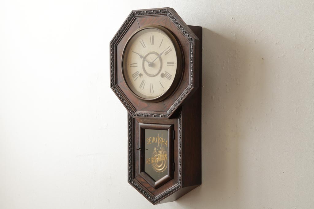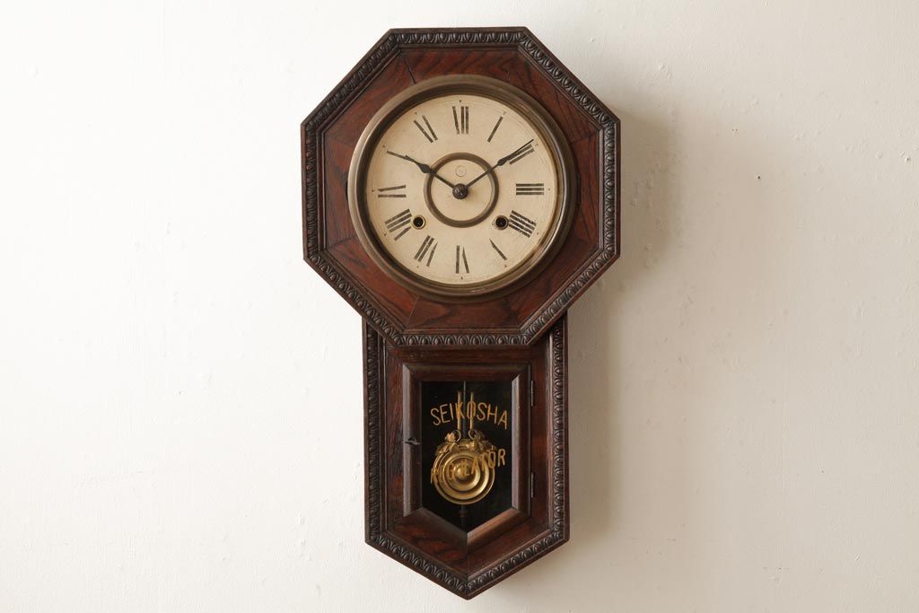 時計> 掛け時計 > アンティーク雑貨 精工舎(SEIKOSHA、セイコー) 8DAY 浮き彫りがクラシカルなゼンマイ式柱時計(掛け時計、振り子時計)(R-039083)