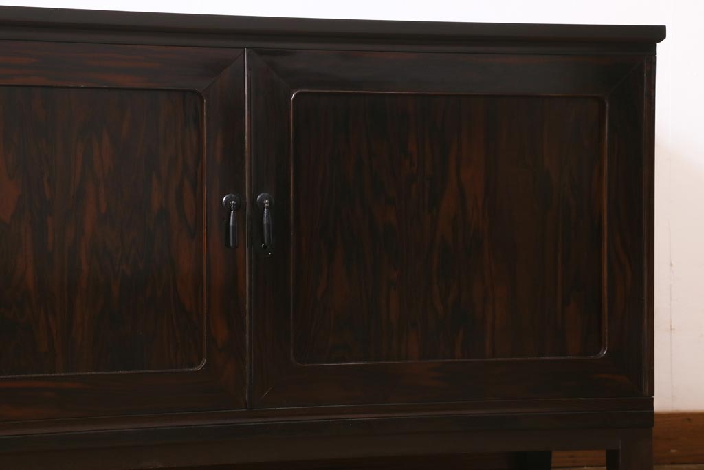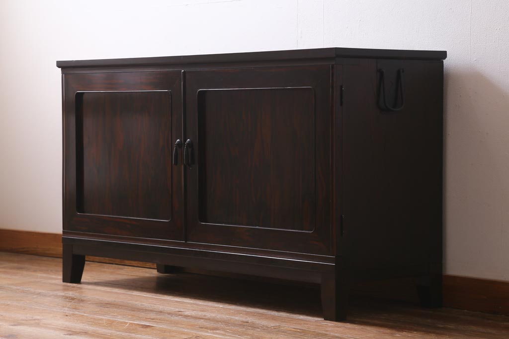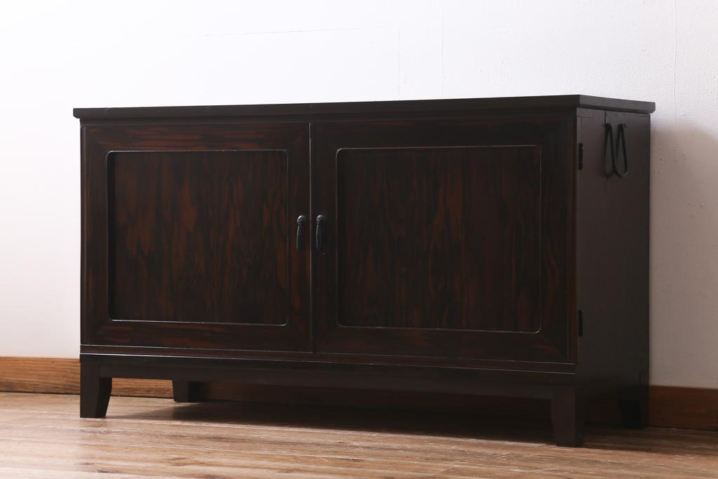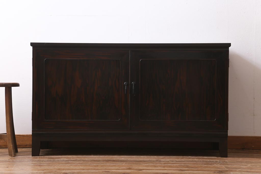 アンティーク家具 昭和初期 リメイク品 前面縞黒檀 上品かつシックな雰囲気を醸し出すサイドボード(収納棚、キャビネット、テレビ台)(R-039126)です。
