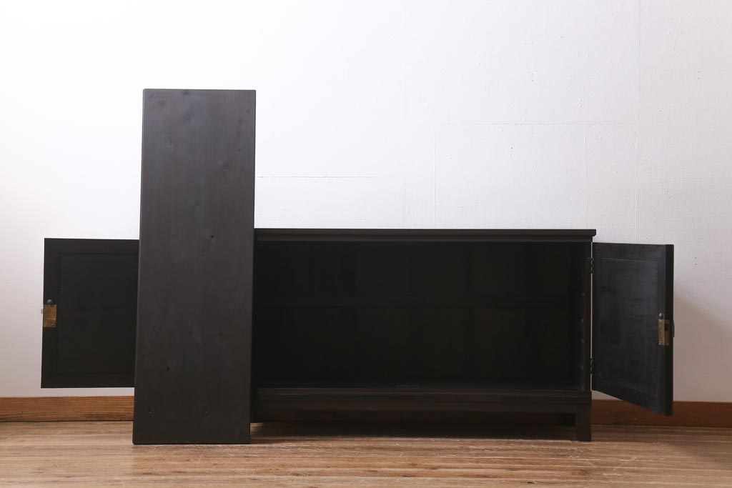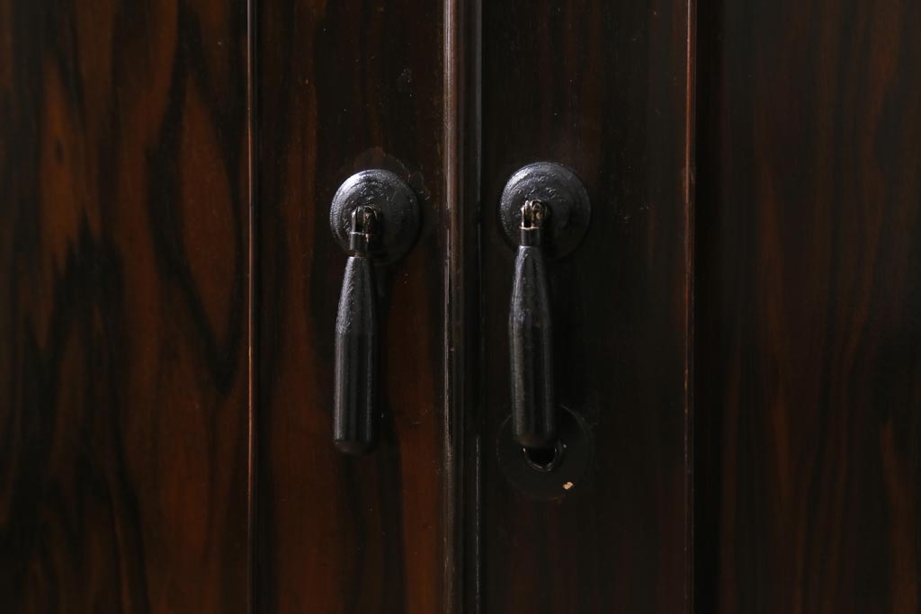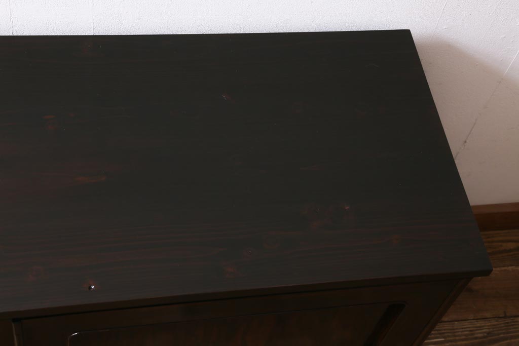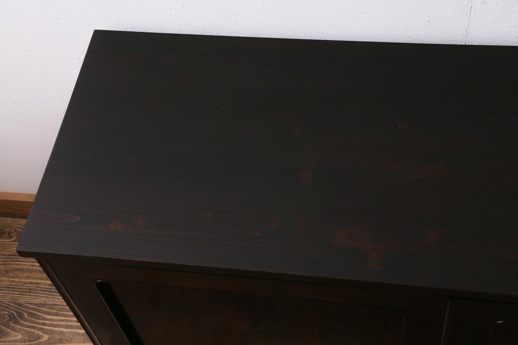 アンティーク家具 昭和初期 リメイク品 前面縞黒檀 上品かつシックな雰囲気を醸し出すサイドボード(収納棚、キャビネット、テレビ台)(R-039126)