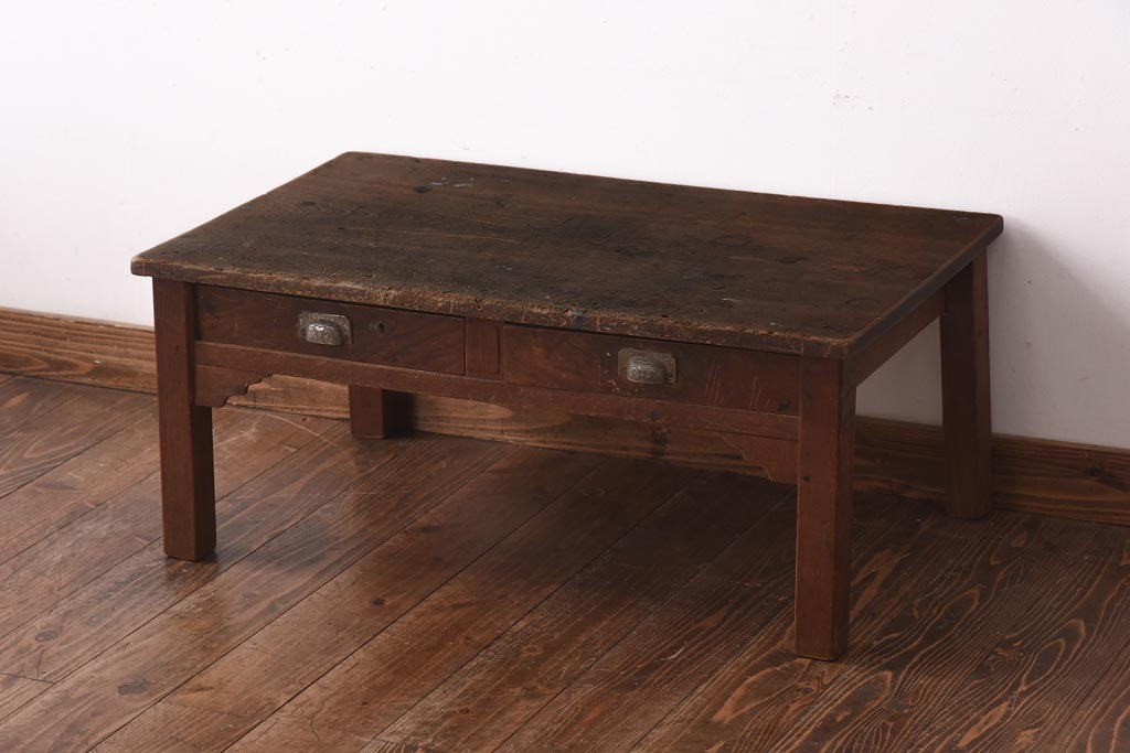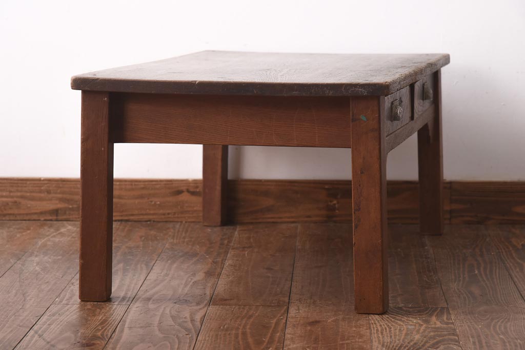 アンティーク家具 大正昭和初期 古い木の質感が味わい深い文机(座机、ローテーブル)(R-039090)