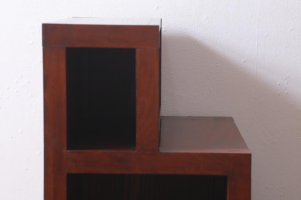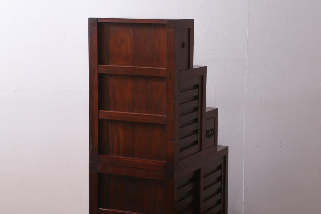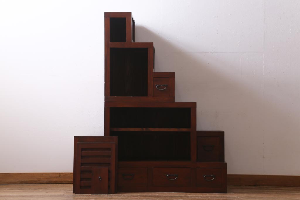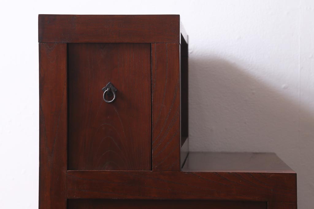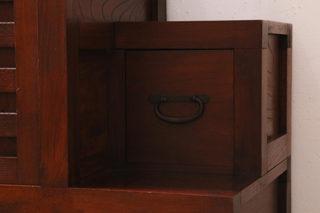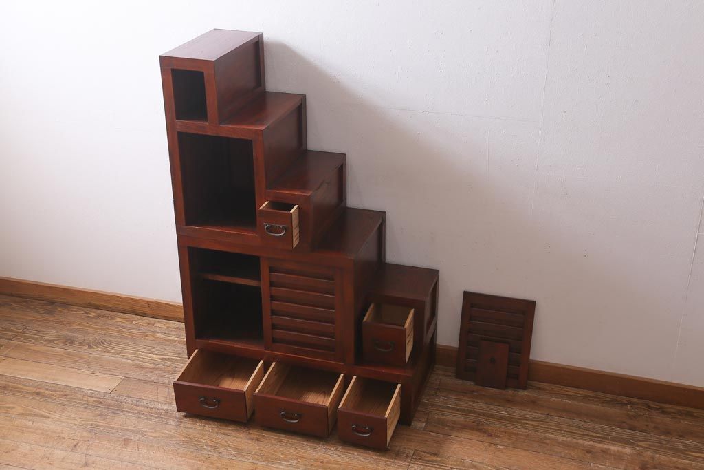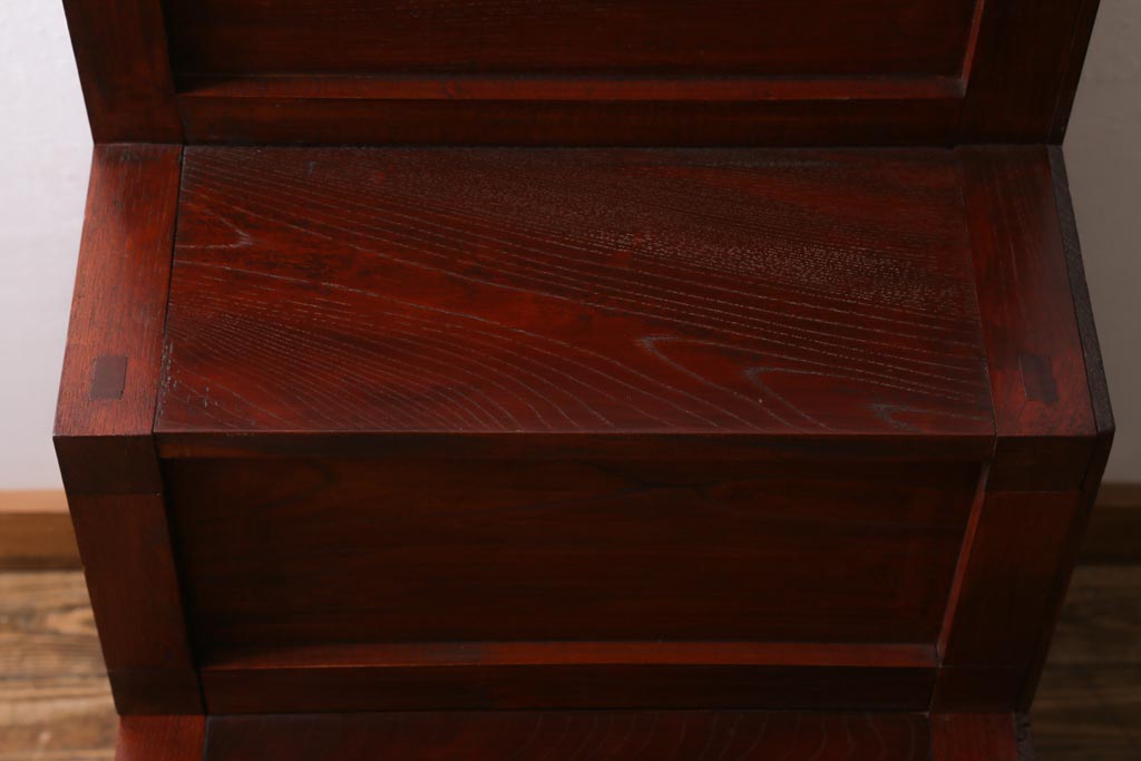 ビンテージ家具 工芸家具 漆塗り 三方にケヤキ無垢材が使われた高級な階段箪笥(R-039129)です。