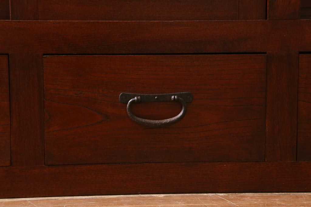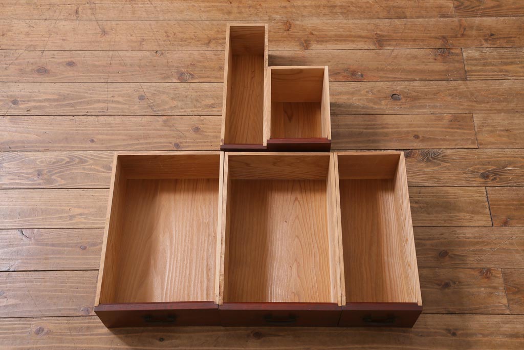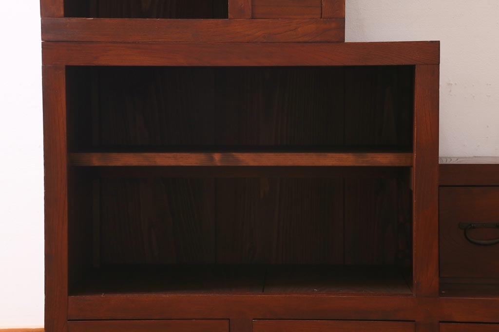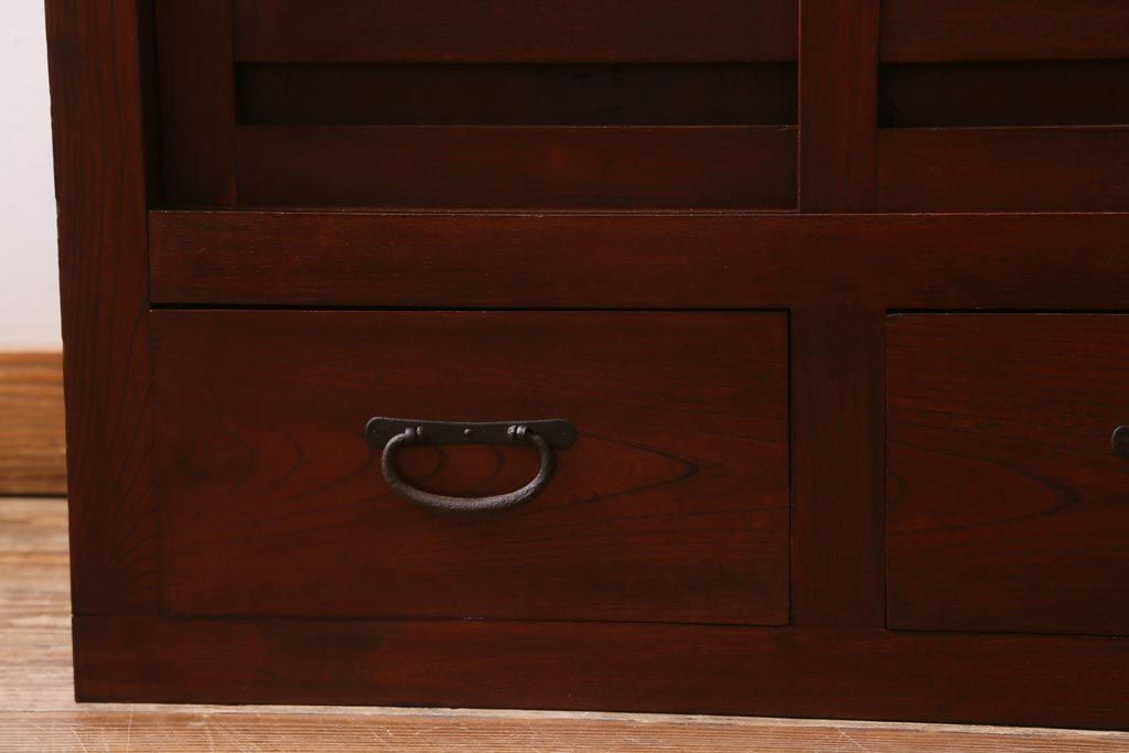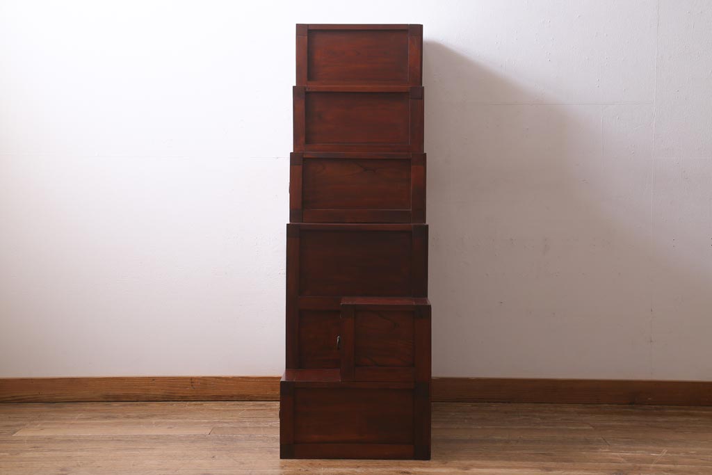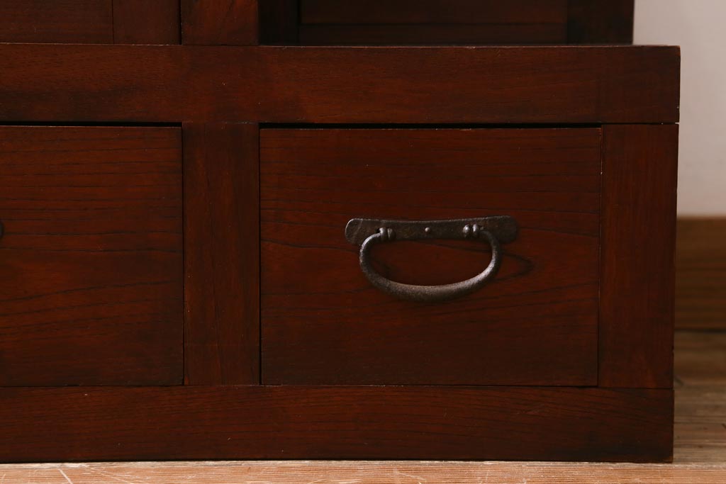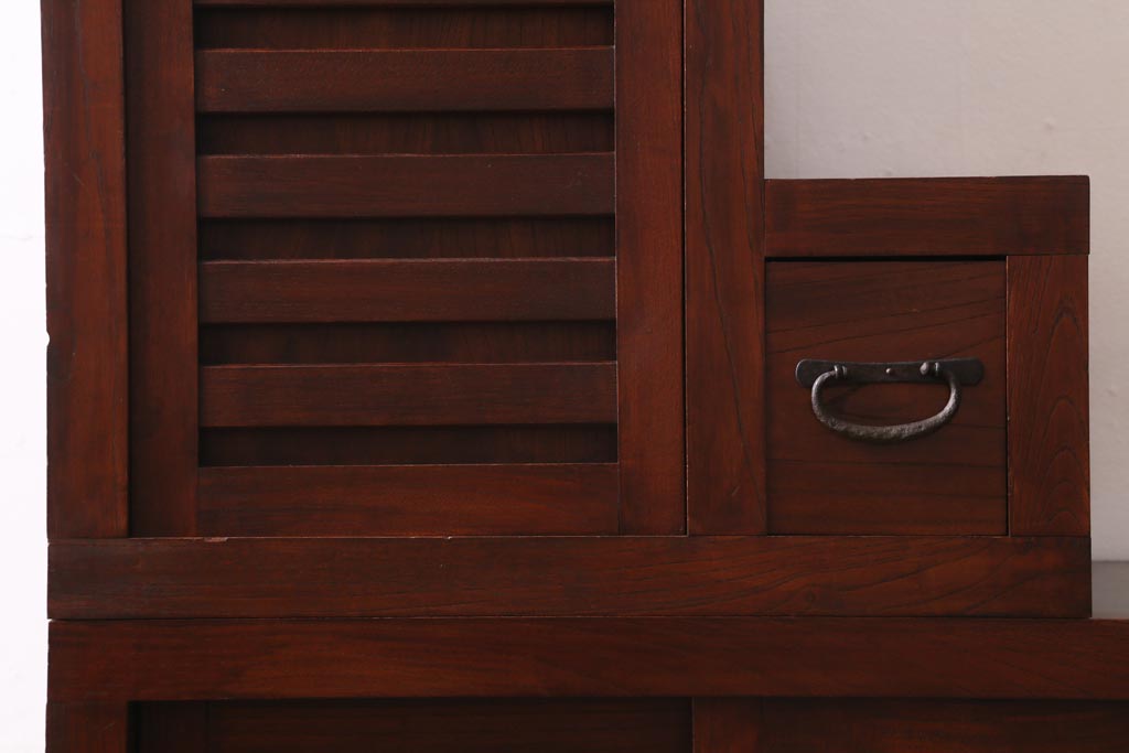 ビンテージ家具 工芸家具 漆塗り 三方にケヤキ無垢材が使われた高級な階段箪笥(R-039129)です。