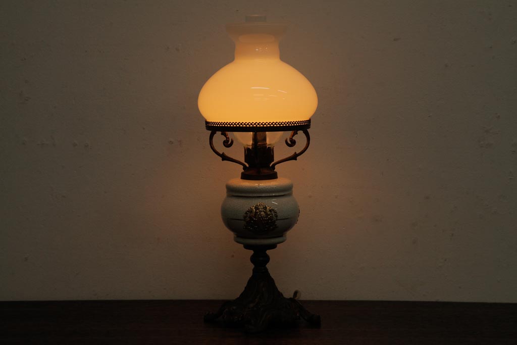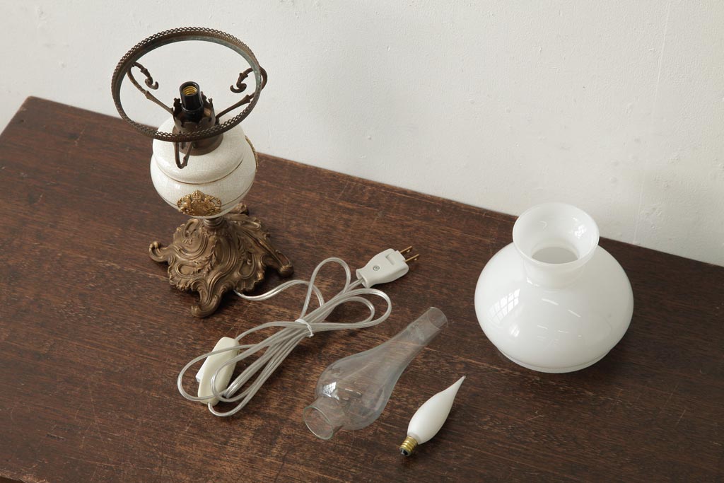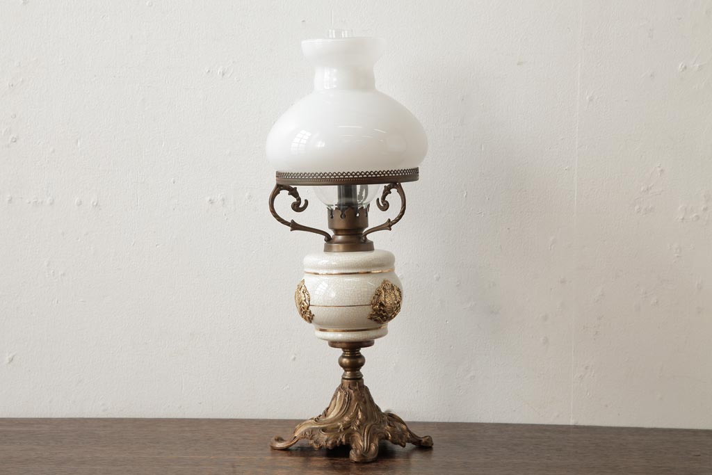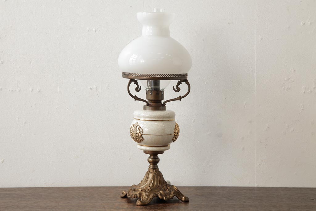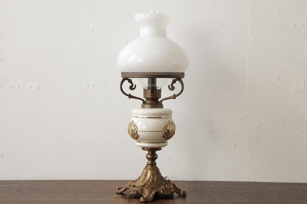 ラフジュ工房> 照明・ランプ> デスクライト・テーブルライト > アメリカビンテージ ヴィンテージ照明 オイルランプ型 陶器製の胴体が珍しいスタンドライト(テーブルランプ)(R-039114)