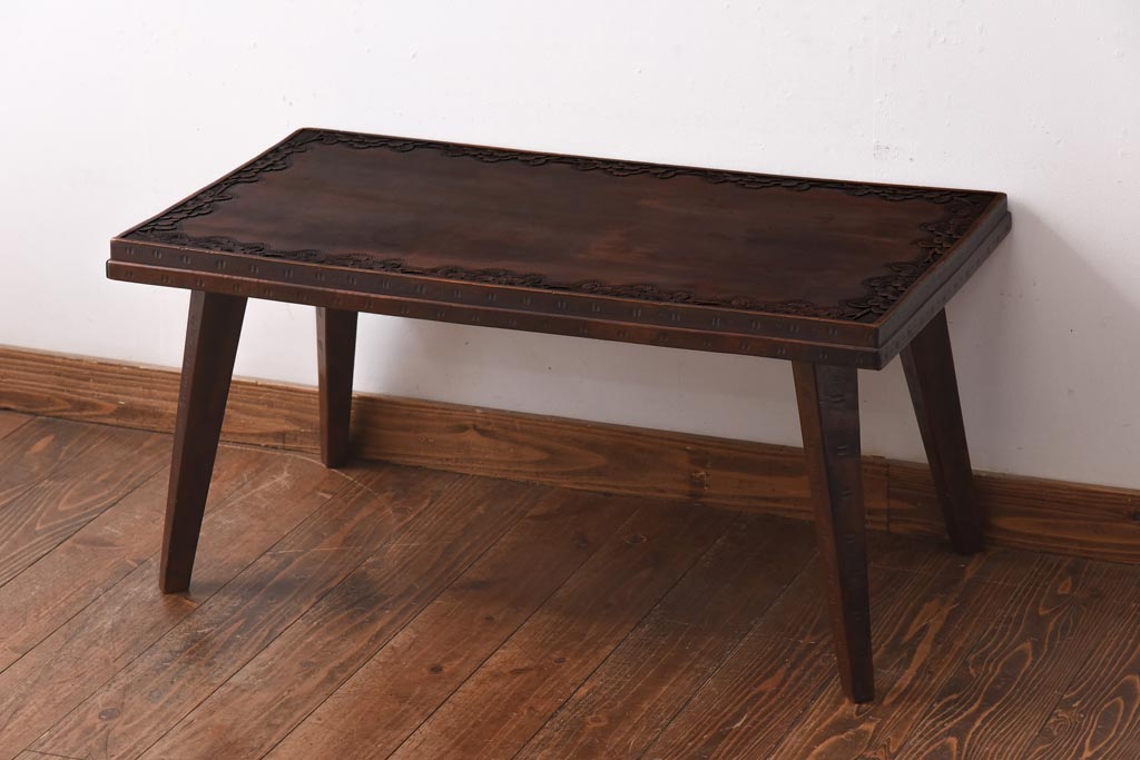 ラフジュ工房> 民芸家具 > ビンテージ家具 伝統工芸 軽井沢彫り 繊細な桜の彫りが目を引くサイドテーブル(センターテーブル)(R-039065)