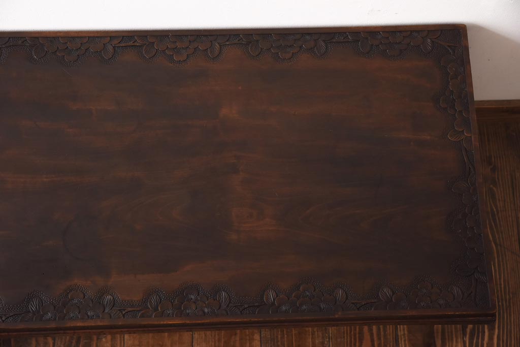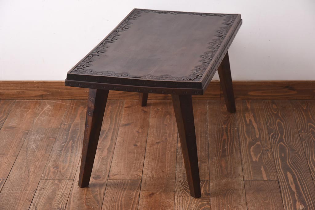 ラフジュ工房> テーブル> センターテーブル・ローテーブル > ビンテージ家具 伝統工芸 軽井沢彫り 繊細な桜の彫りが目を引くサイドテーブル(センターテーブル)(R-039065)