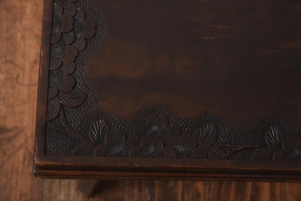 ビンテージ家具 伝統工芸 軽井沢彫り 繊細な桜の彫りが目を引くサイドテーブル(センターテーブル)(R-039065)
