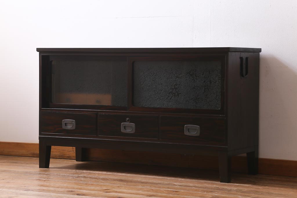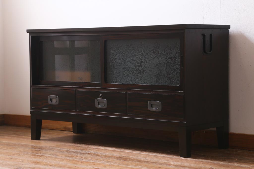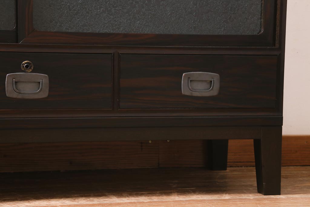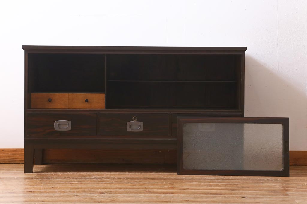 アンティーク家具 黒檀 リメイク 上品な和の雰囲気漂う脚付きローボード(テレビボード、収納棚、リビングボード)(R-039193)