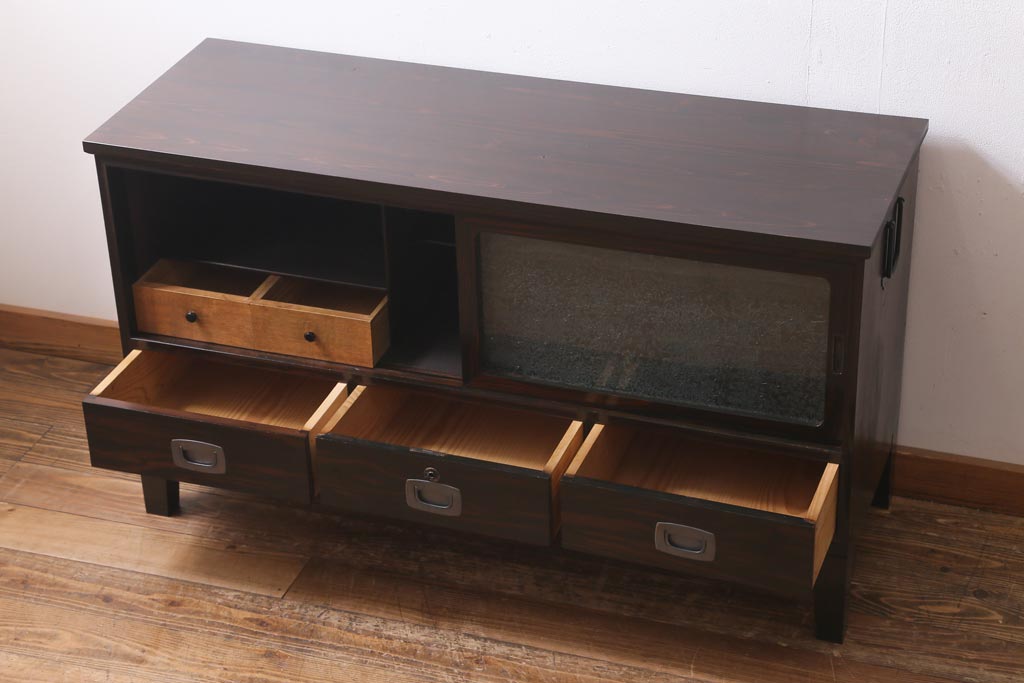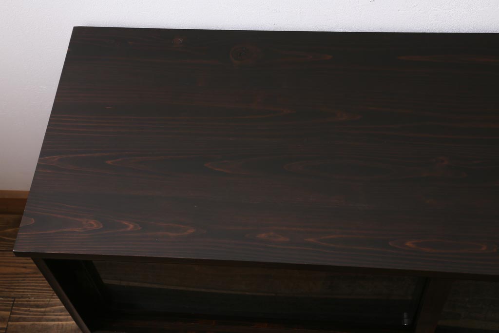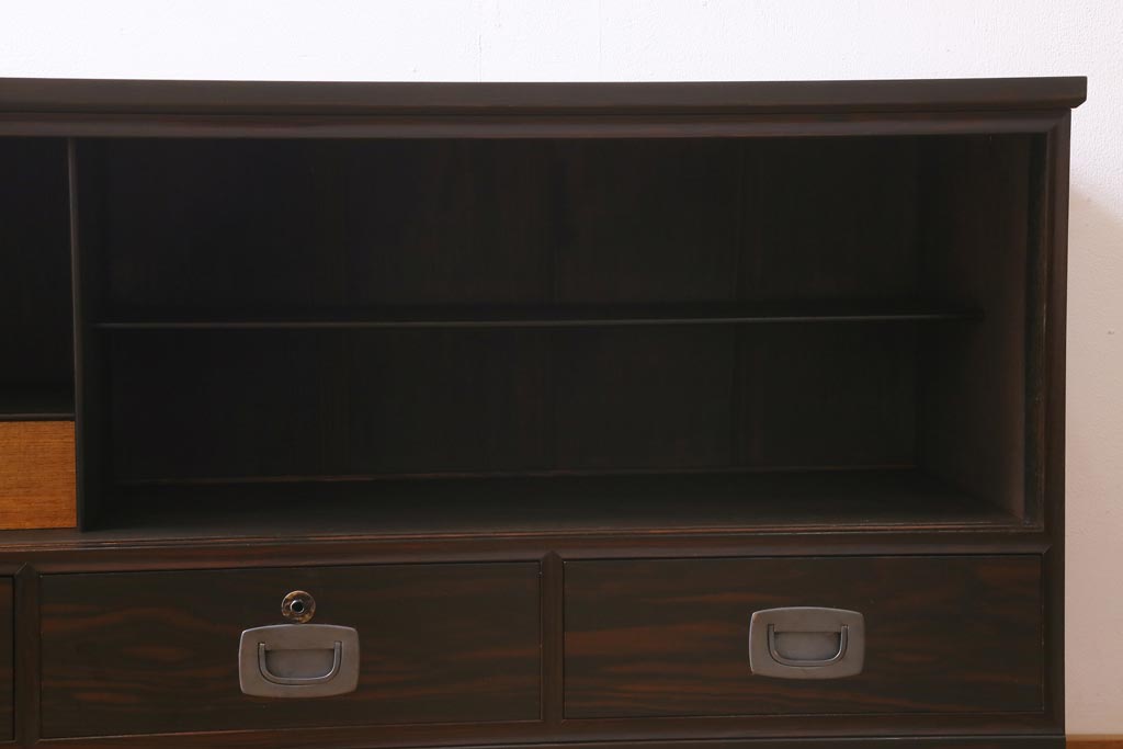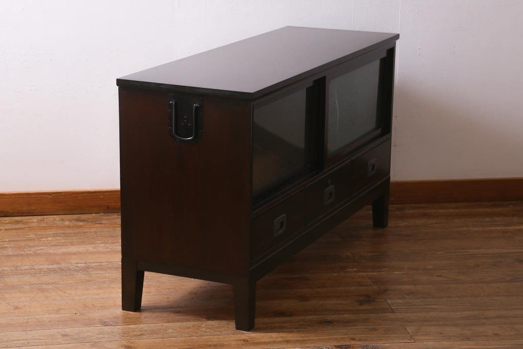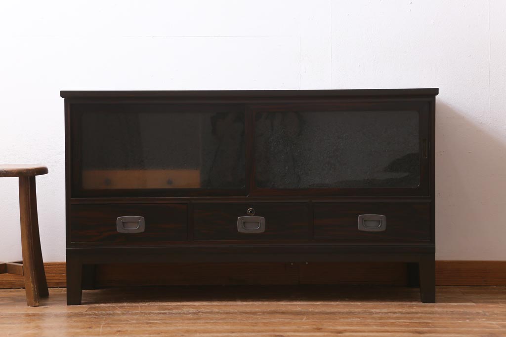 アンティーク家具 黒檀 リメイク 上品な和の雰囲気漂う脚付きローボード(テレビボード、収納棚、リビングボード)(R-039193)