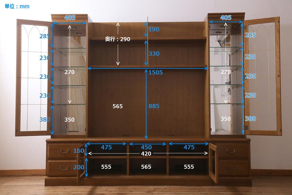 ラフジュ工房> キャビネット・戸棚> テレビ台・ローボード > 中古 カリモク domani(ドマーニ) QUEENS LIFE(クイーンズライフ) シアターボード(ユニットキャビネット、テレビボード、飾り棚)(定価約120万円)(R-039087)