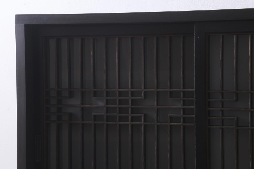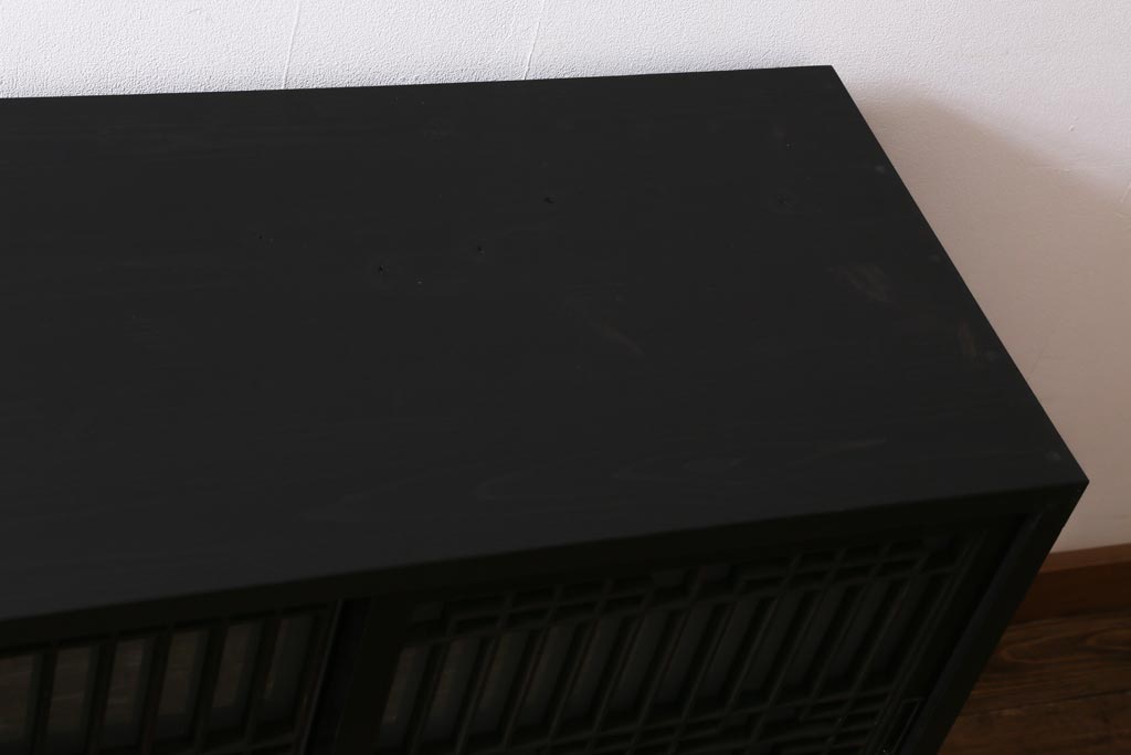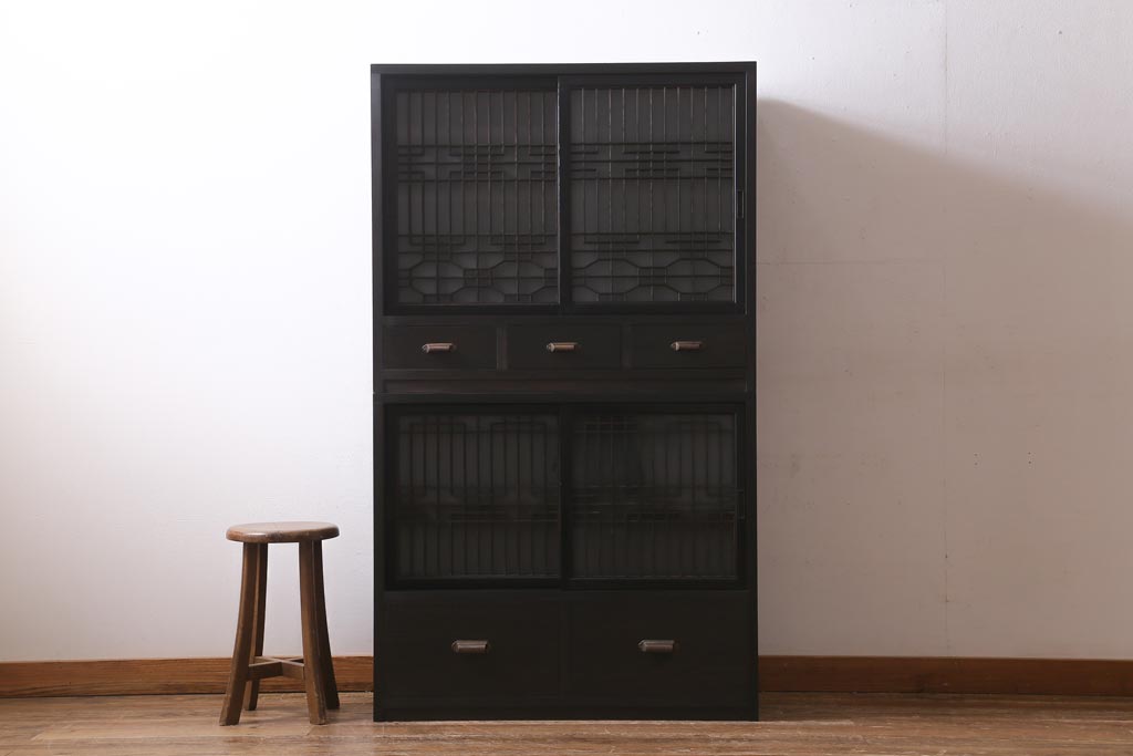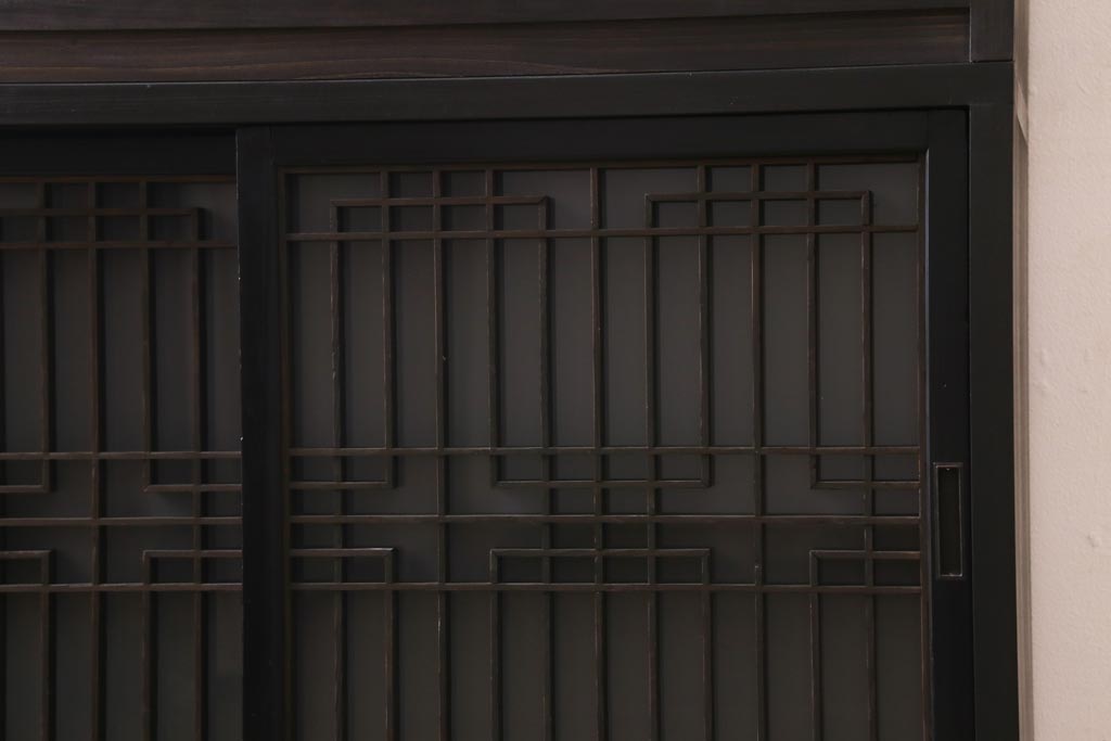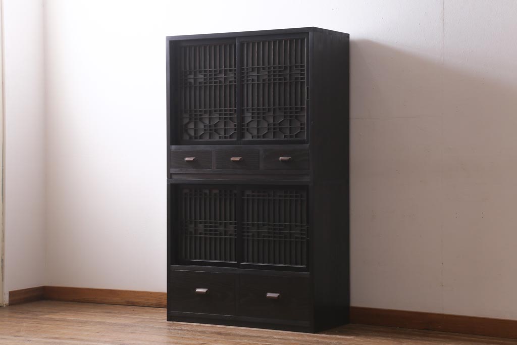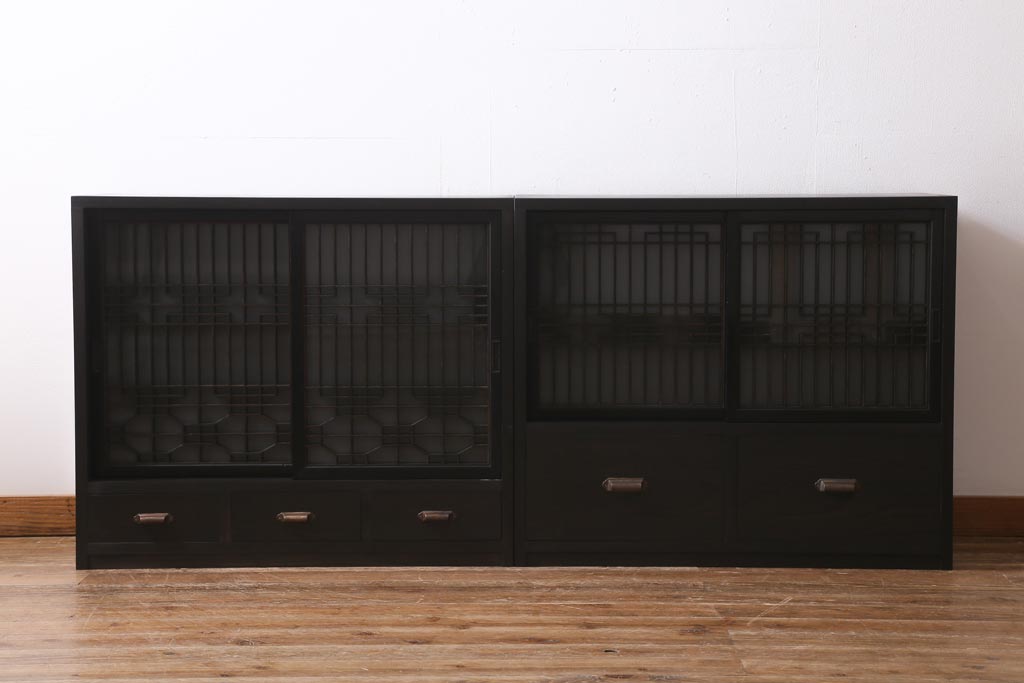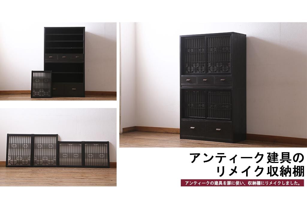ラフジュ工房オリジナル 古建具リメイク すりガラス入り 洗練された和の趣漂う重ね戸棚(書院戸、組子、キャビネット、収納棚)(R-039061)です。