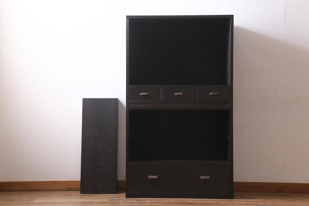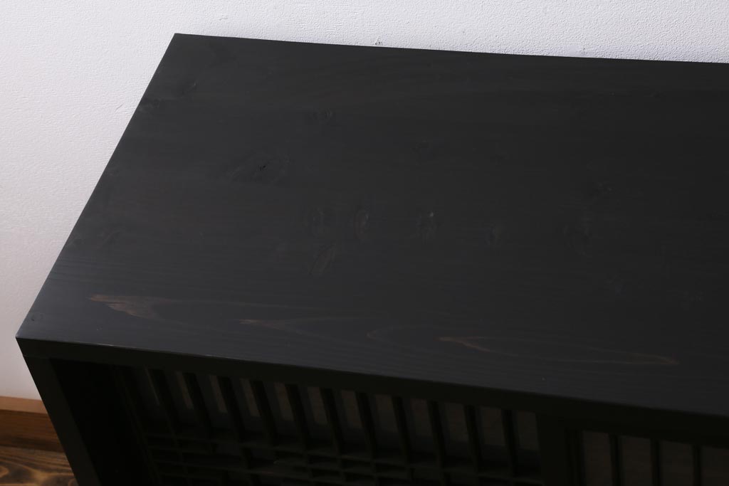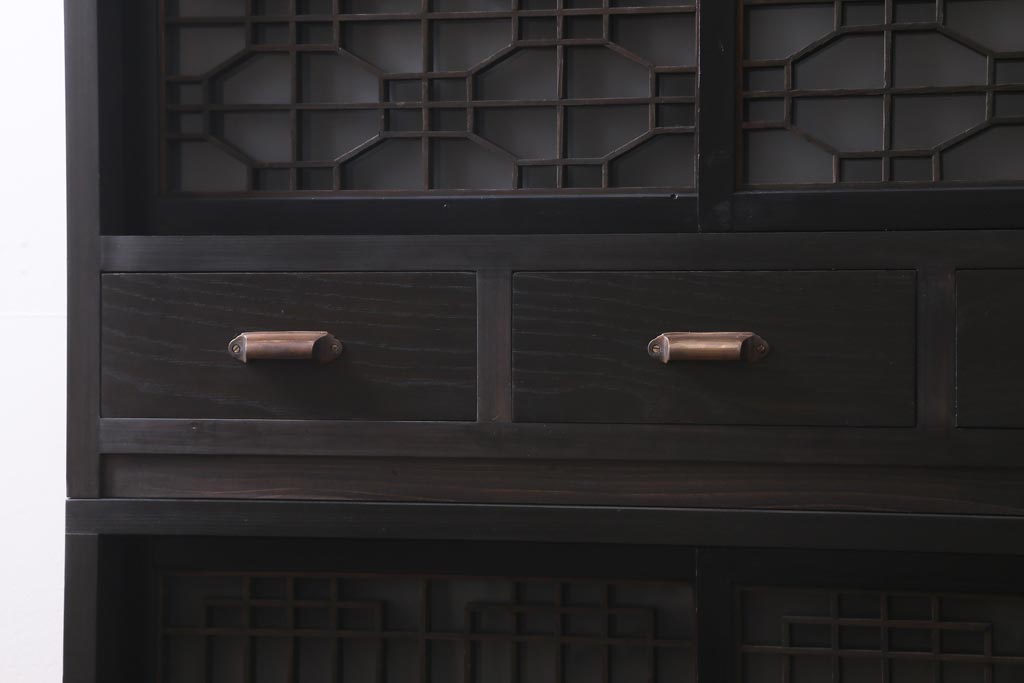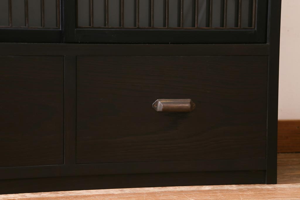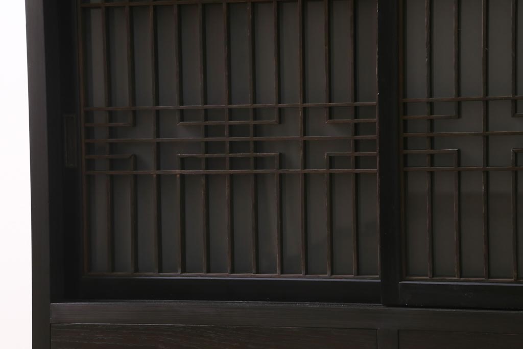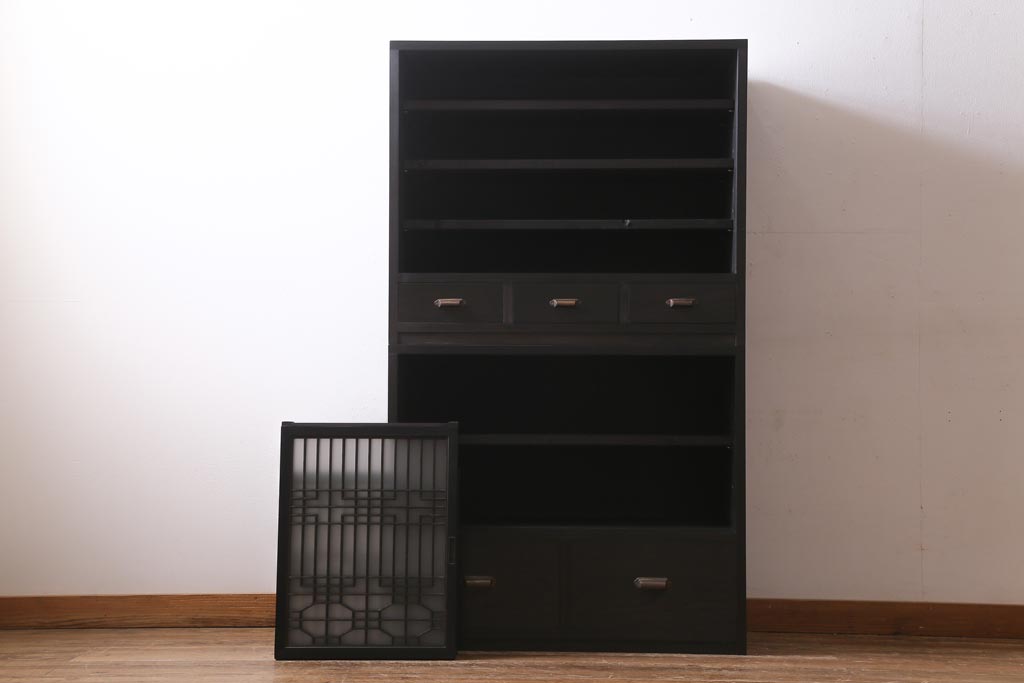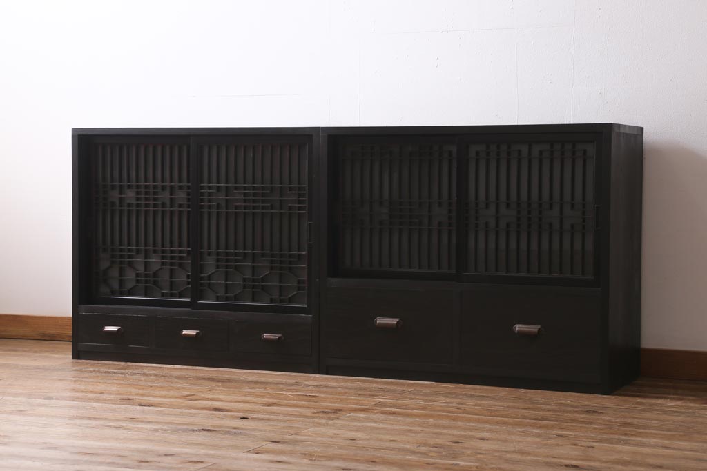 ラフジュ工房オリジナル 古建具リメイク すりガラス入り 洗練された和の趣漂う重ね戸棚(書院戸、組子、キャビネット、収納棚)(R-039061)です。