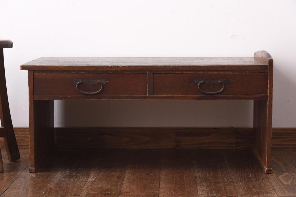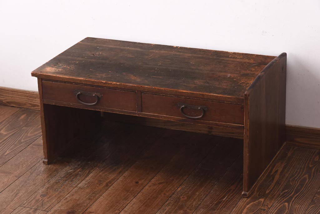 デスク> 文机・座机 > アンティーク家具 和製アンティーク 明治大正期 味わい深い木の風合いが魅力的な文机(座机、ローテーブル)(R-039068)
