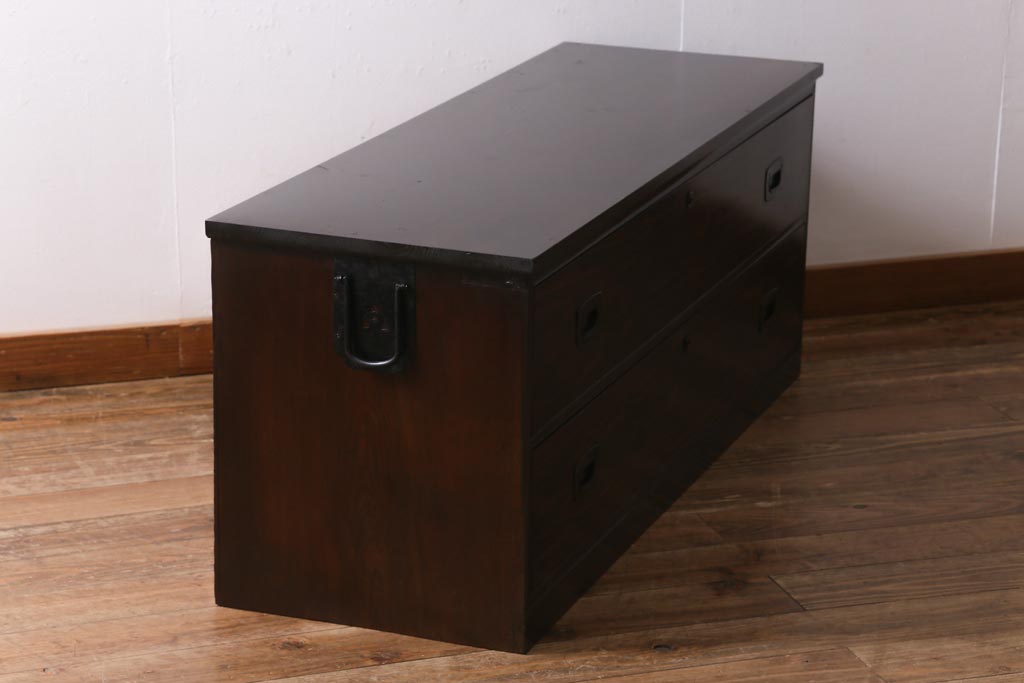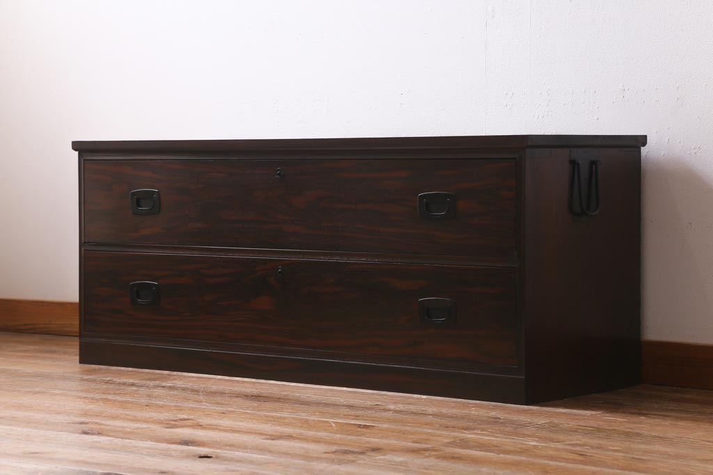 アンティーク家具 昭和初期 縞黒檀 洗練された佇まいが魅力のローチェスト(引き出し、衣装箪笥、ローボード)(R-039132)です。