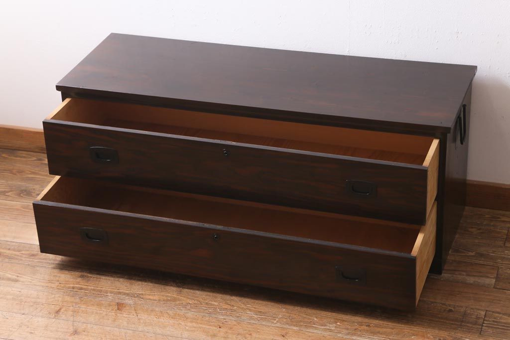 アンティーク家具 昭和初期 縞黒檀 洗練された佇まいが魅力のローチェスト(引き出し、衣装箪笥、ローボード)(R-039132)