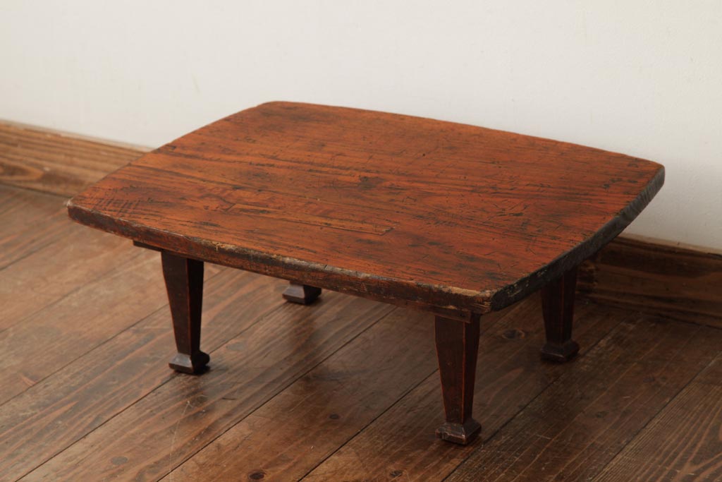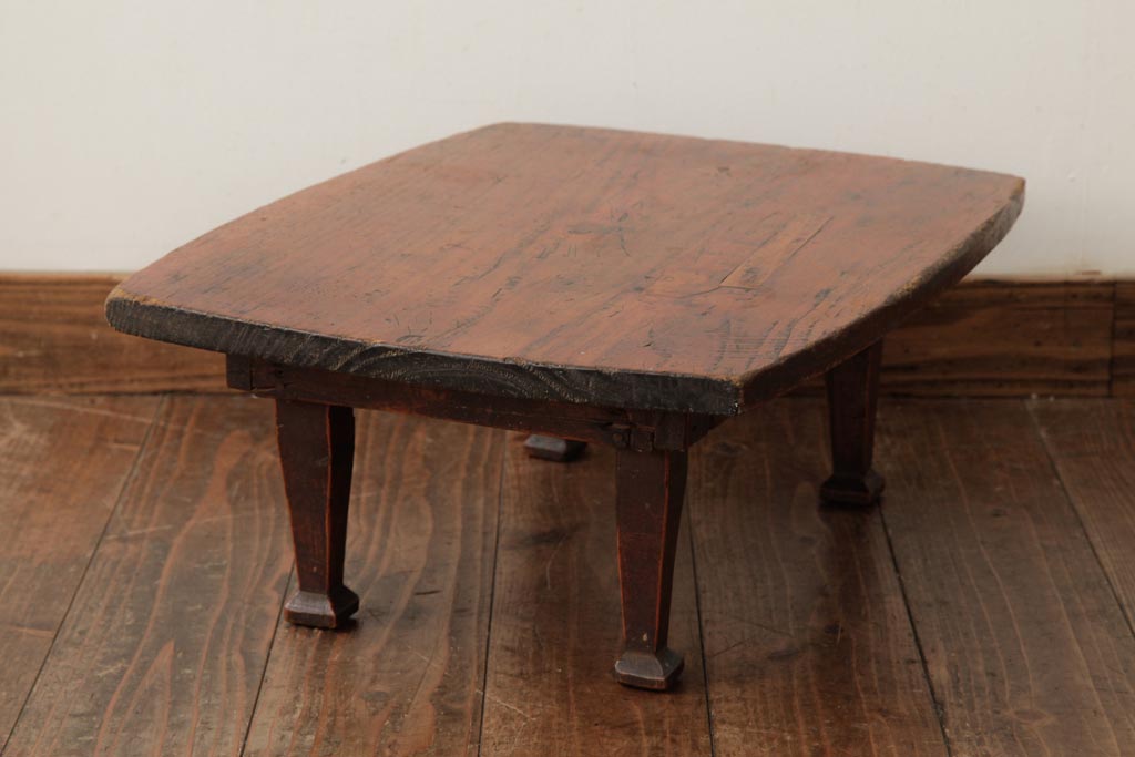 テーブル> ちゃぶ台 > アンティーク家具 和製アンティーク 大正昭和初期 脚の形が可愛らしい小振りな角ちゃぶ台(ローテーブル、座卓)(R-039205)