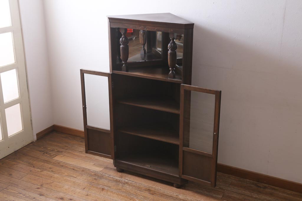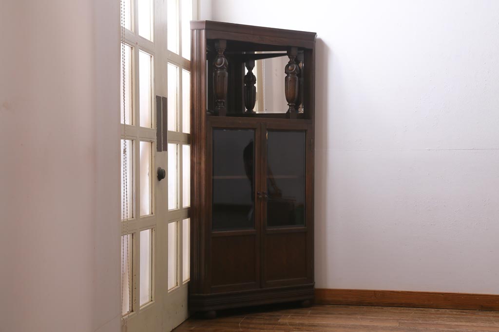 アンティーク家具 大正ロマン 大正昭和初期 上手物!洋館で使われていたシックなコーナーキャビネット(収納棚)(R-039232)
