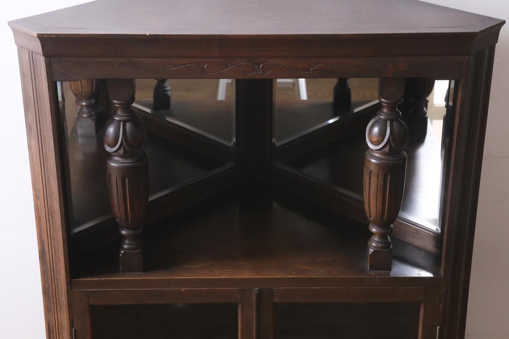 アンティーク家具 大正ロマン 大正昭和初期 上手物!洋館で使われていたシックなコーナーキャビネット(収納棚)(R-039232)です。