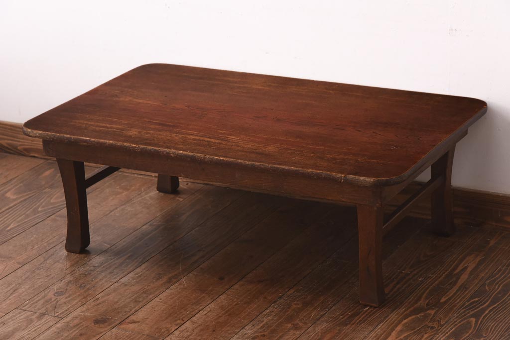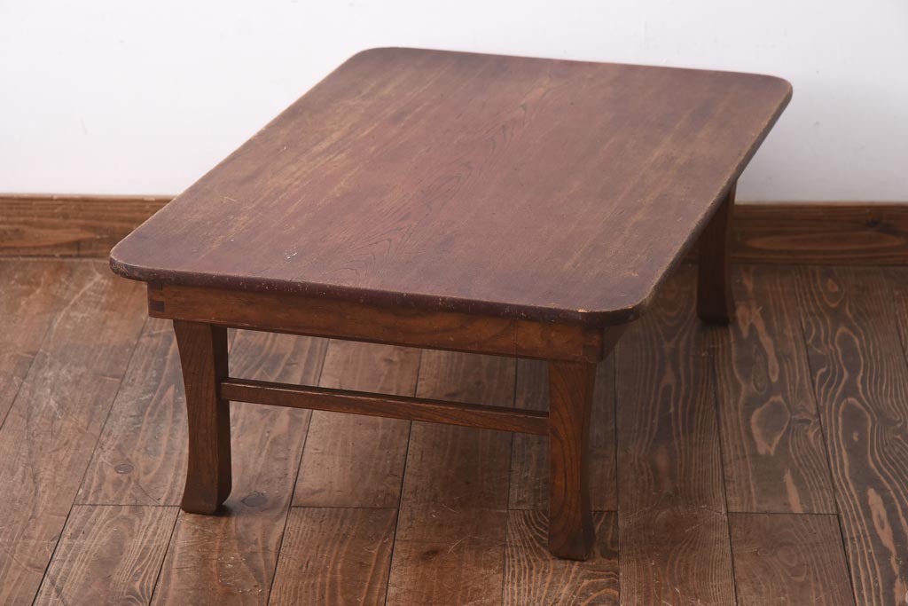 テーブル> 座卓 > レトロ家具 和製アンティーク 昭和初期 栓材 レトロな雰囲気ただよう角ちゃぶ台(折りたたみテーブル、座卓、ローテーブル)(R-039211)