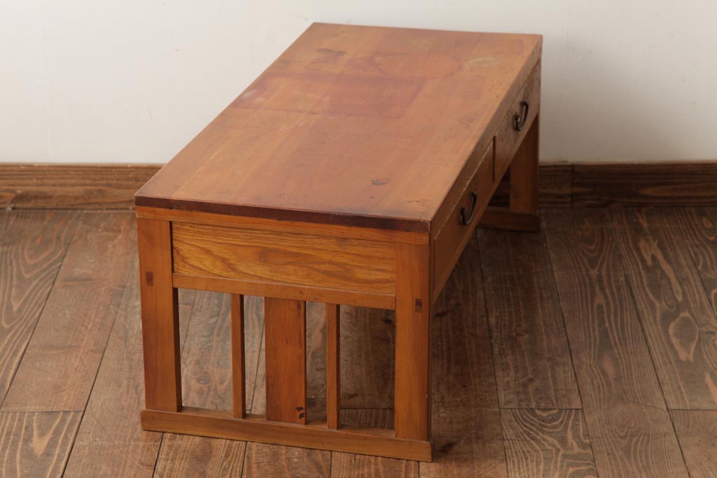 アンティーク家具 和製アンティーク 昭和初期 温もり溢れる明るい色味の文机(座机、ローテーブル)(R-039230)です。