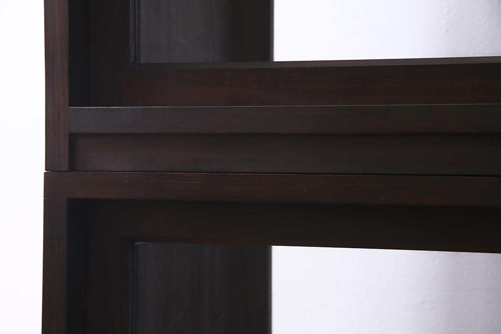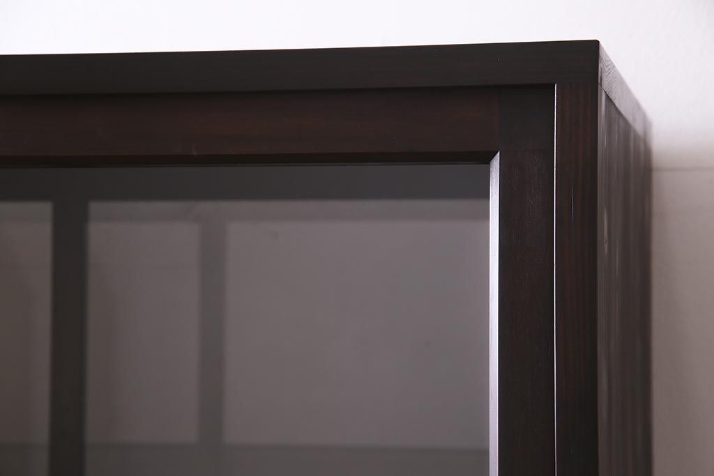 ヒノキ無垢材、ヒバ材使用の当店オリジナルのガラス戸棚です。