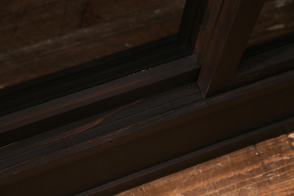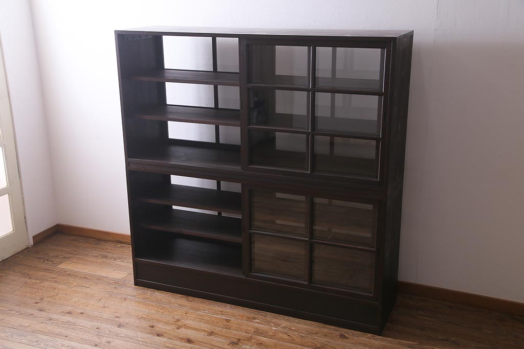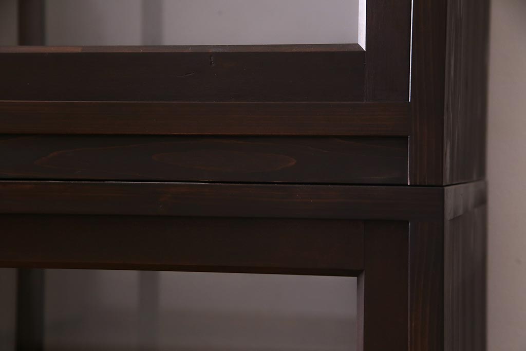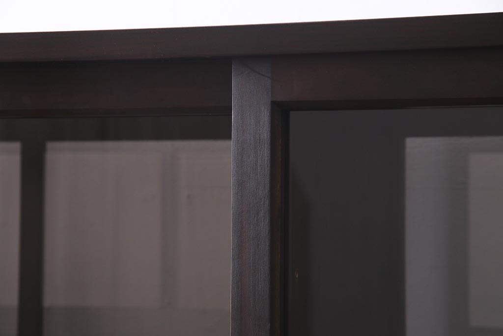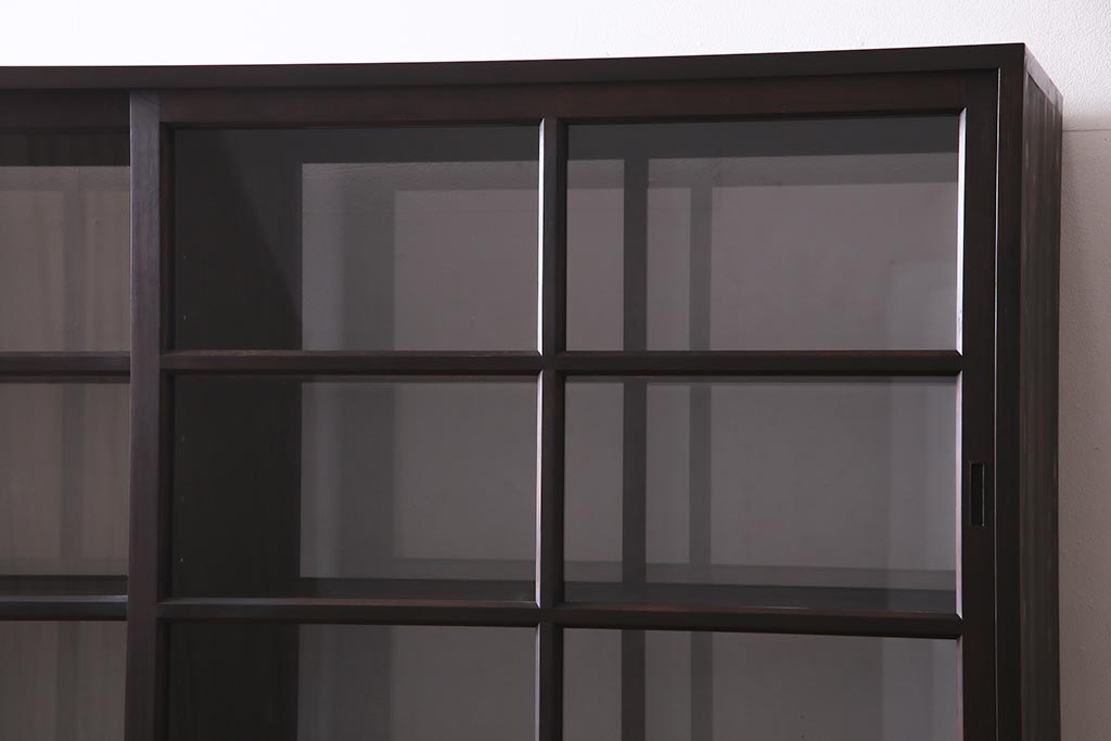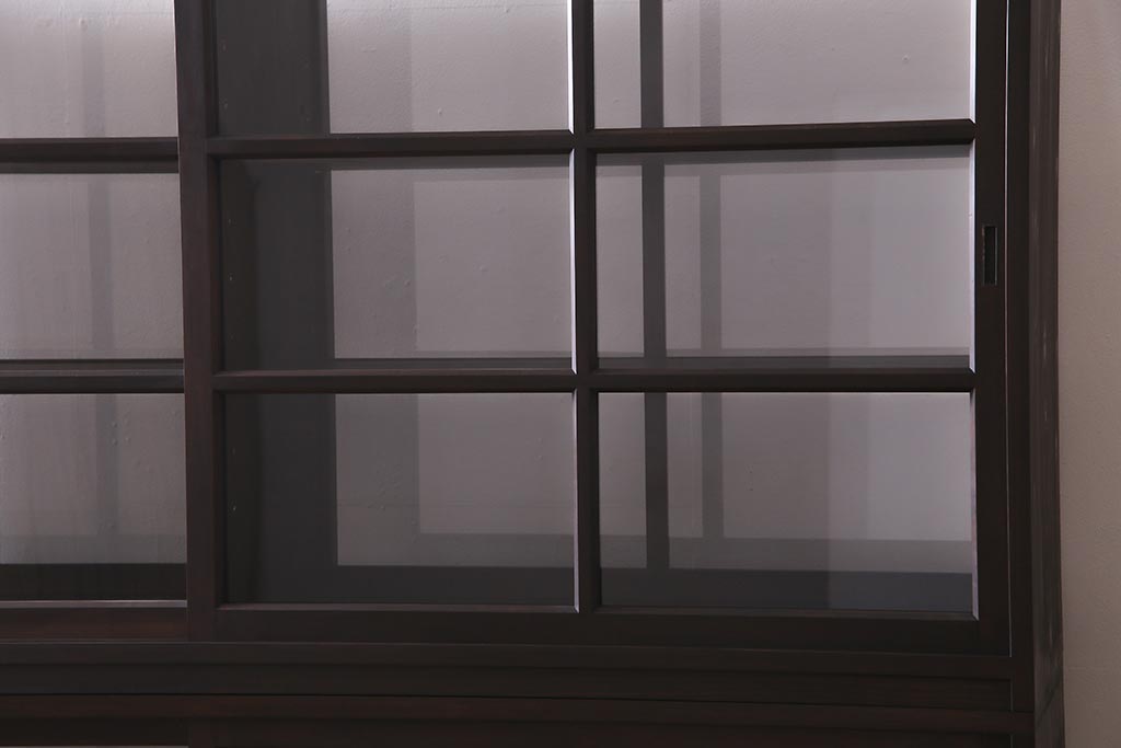 【オーダー注文・受注生産商品】ラフジュ工房オリジナル 両面ガラス引き戸 引き出し付き 両面使いの重ね戸棚(収納棚、キャビネット)です。