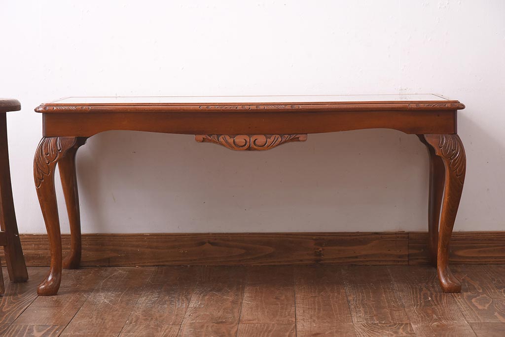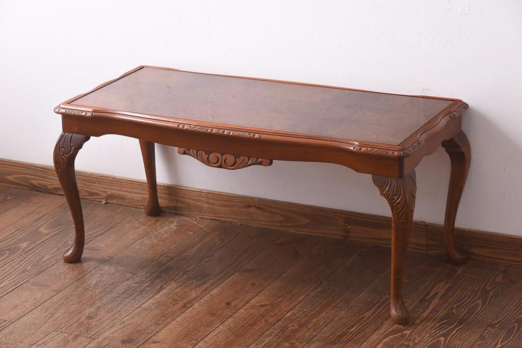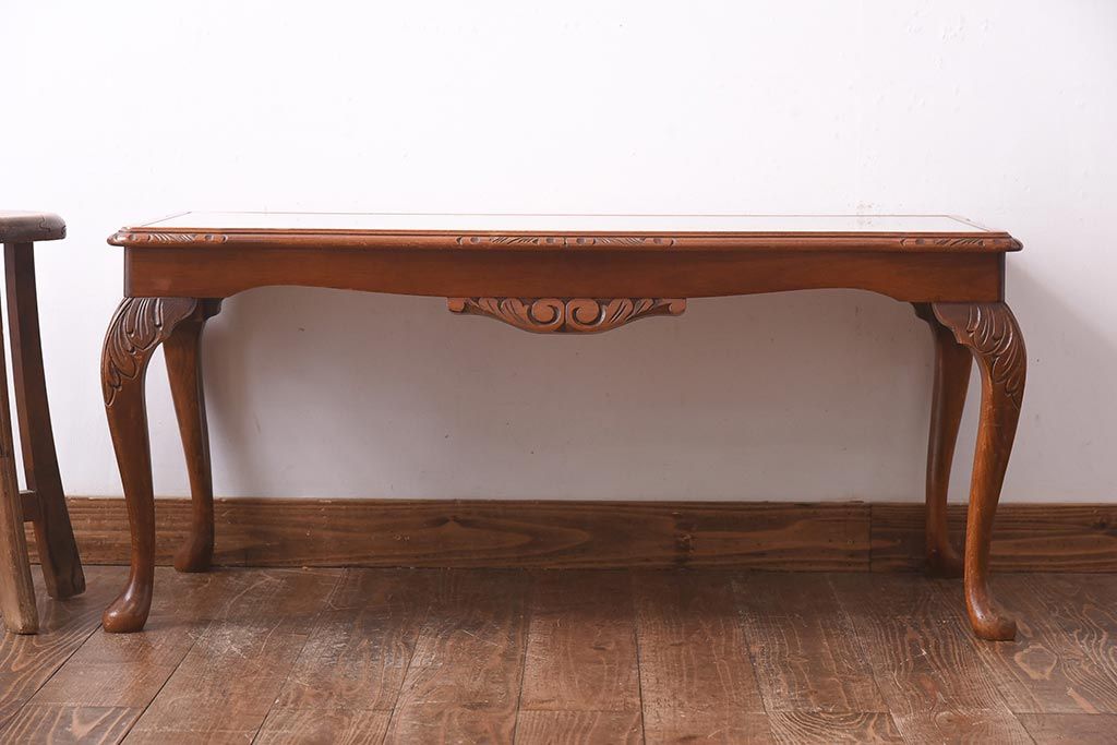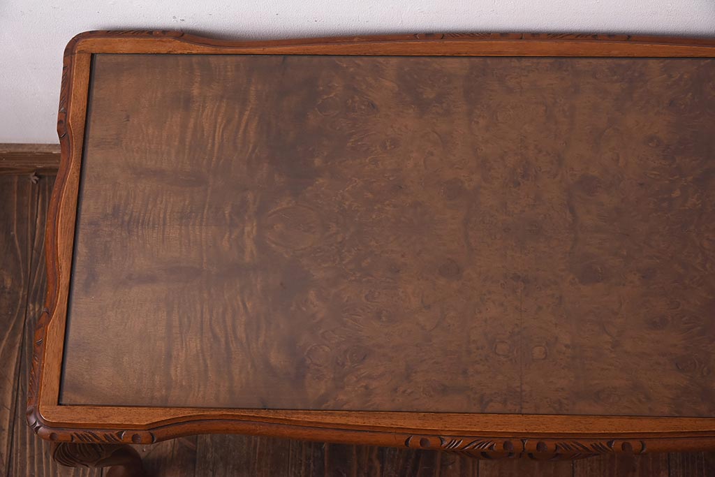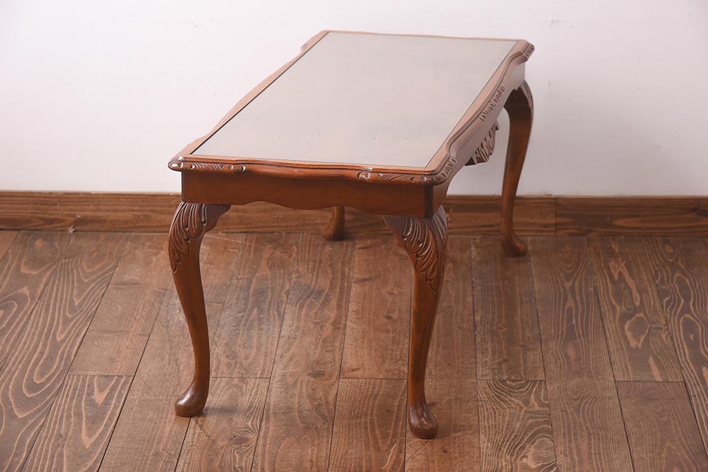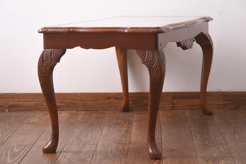 ヴィンテージ家具 フランスビンテージ 優雅なフォルムが目を引く猫脚のサイドテーブル(センターテーブル、ローテーブル)(R-039295)
