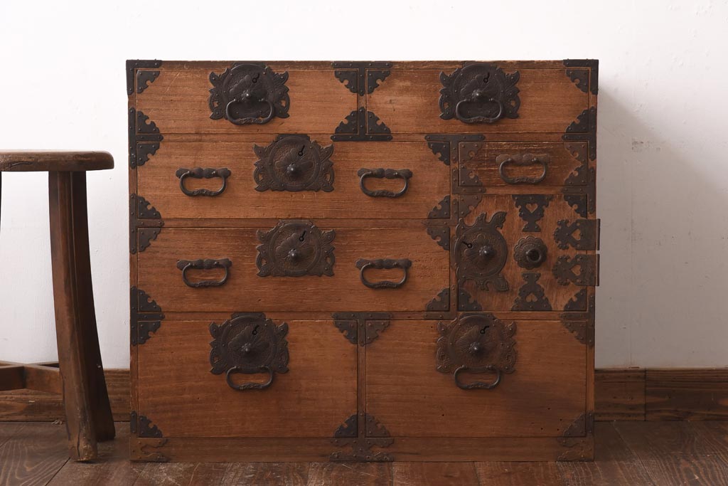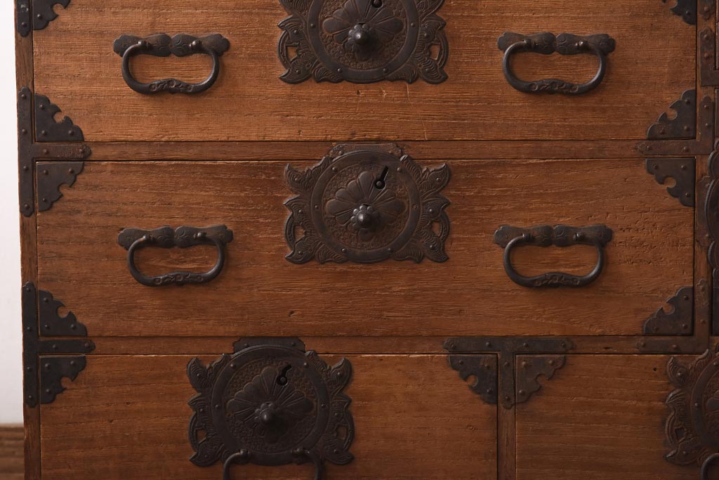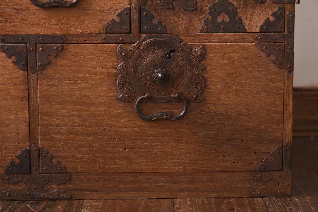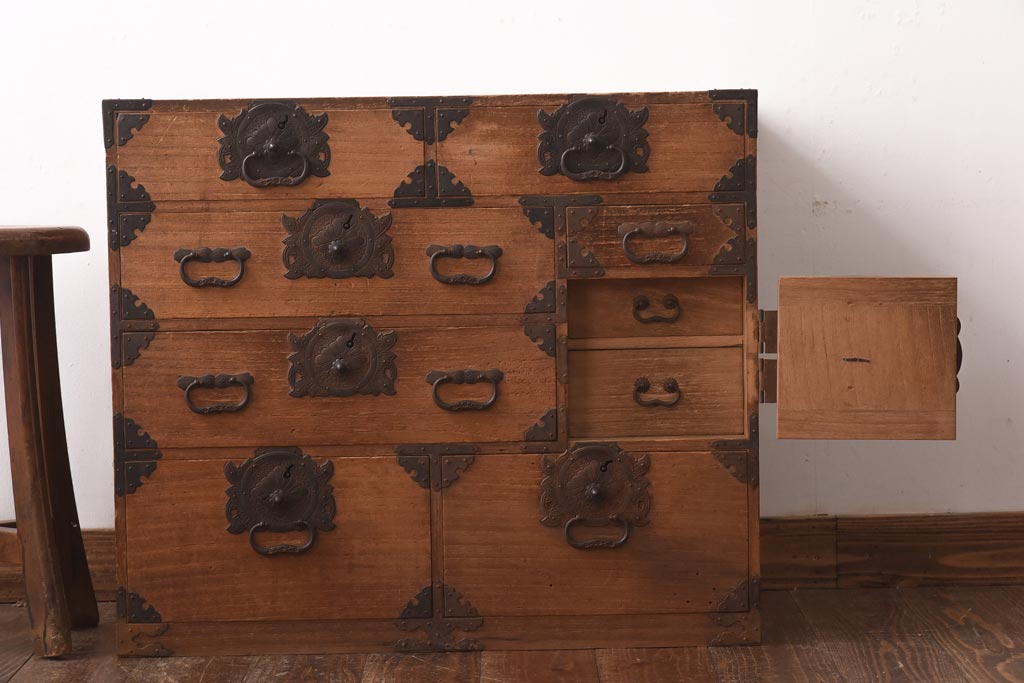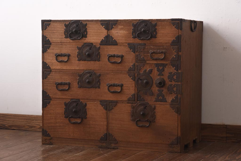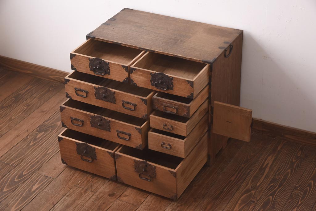アンティーク家具 古民具 総桐材 上手物!小振りなサイズが珍しい仙台小箪笥(仙台箪笥、時代箪笥)(R-039214)です。