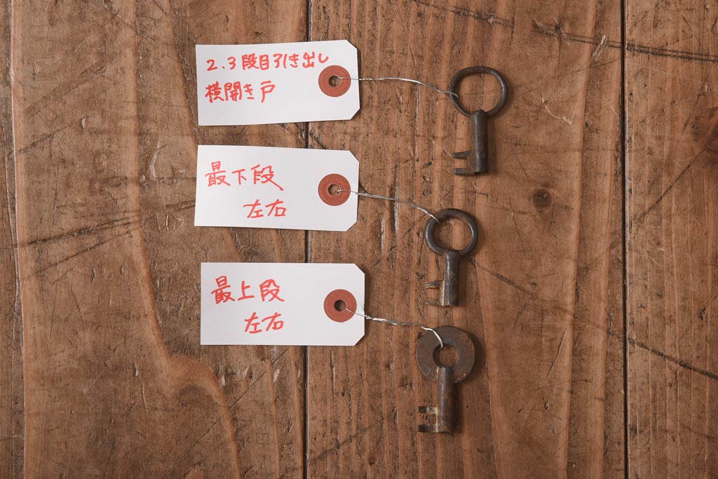 鍵は付属します。画像にありますように、袋に入れお付けします。あくまでも現状品ですので、長期の使用保証は出来かねます。