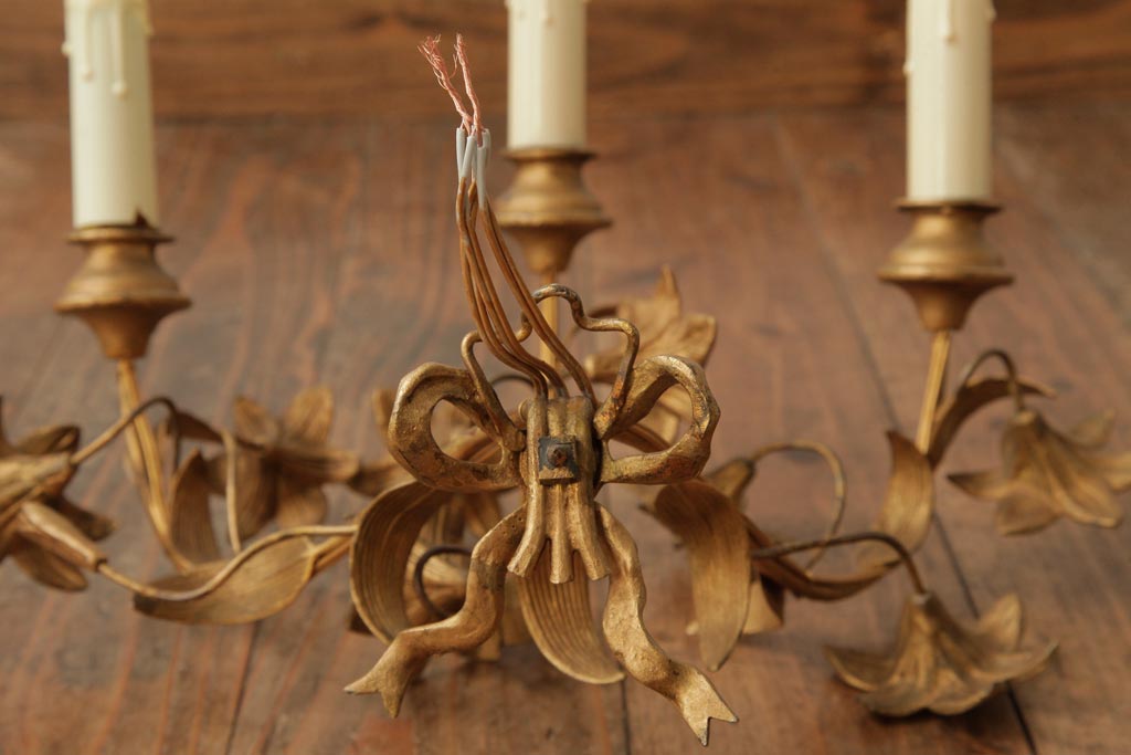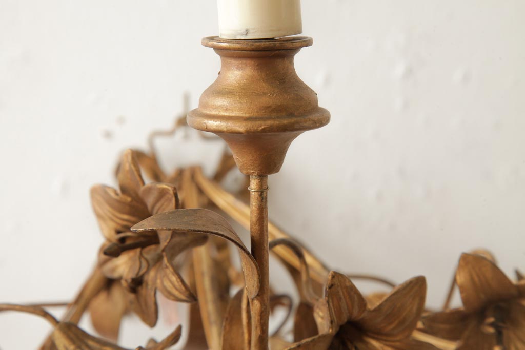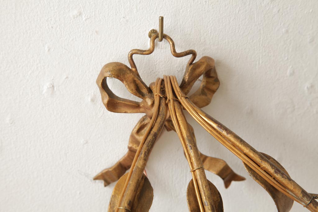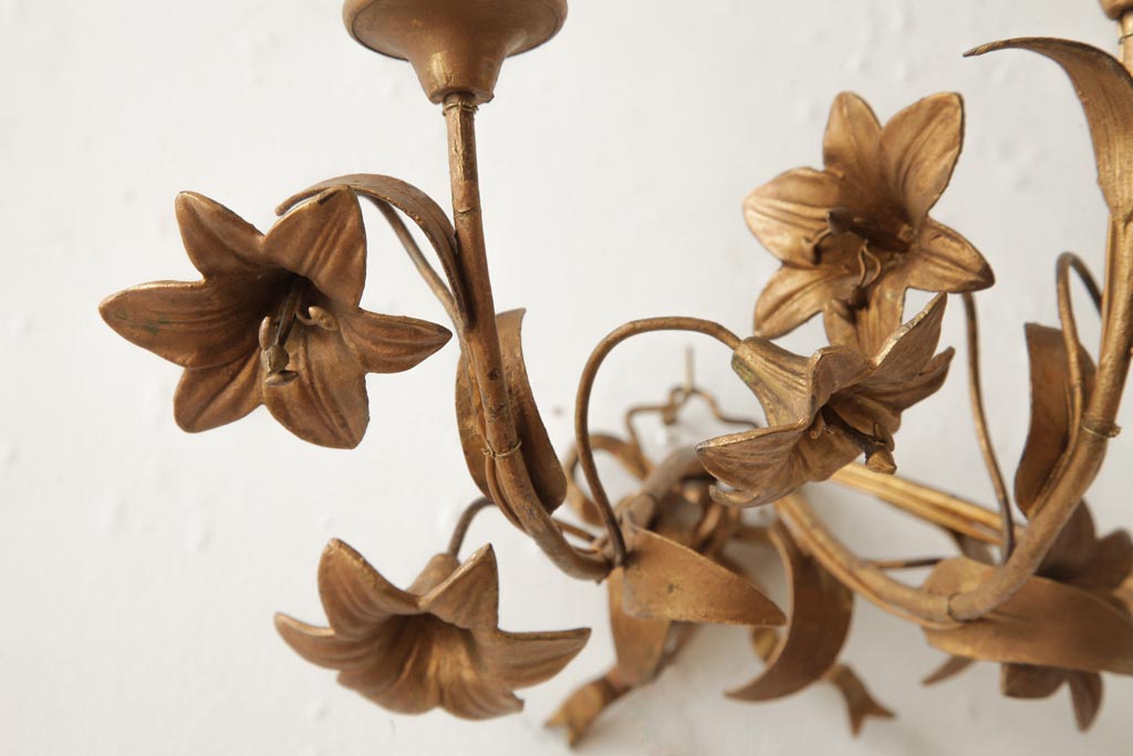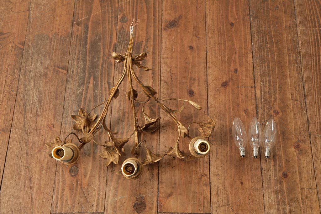 ヴィンテージ照明 フランスビンテージ 真鍮製 3灯 花の装飾がすてきなウォールランプ(壁掛け照明、壁付け照明)(R-039119)です。