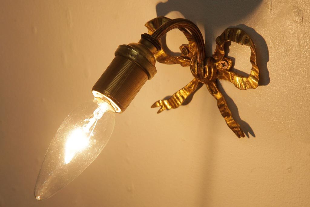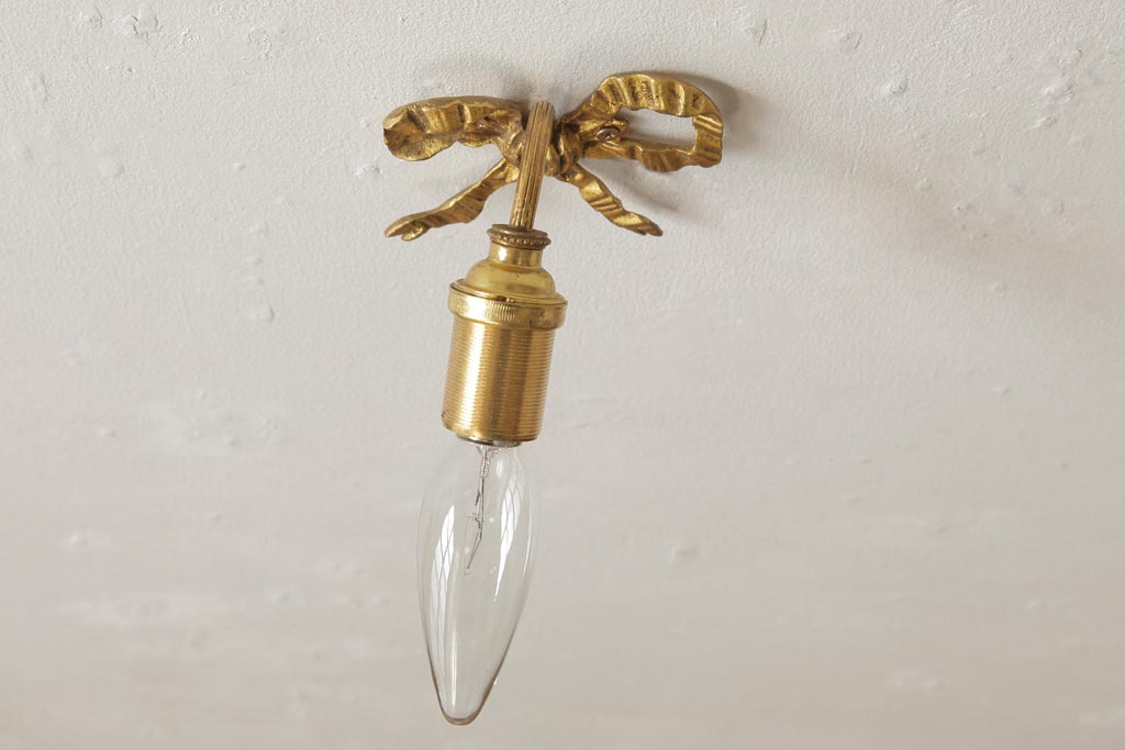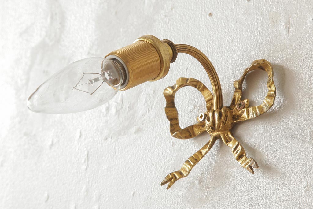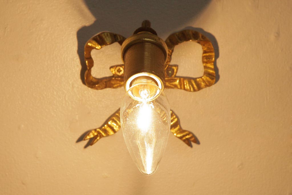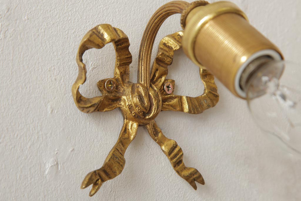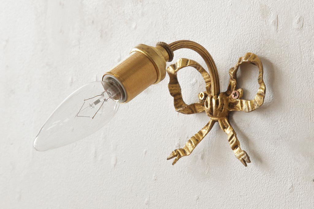 ヴィンテージ照明 フランスビンテージ 真鍮製 リボンが可愛らしい小さなウォールランプ(壁掛け照明、壁付け照明)(R-039084)