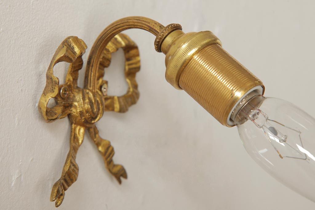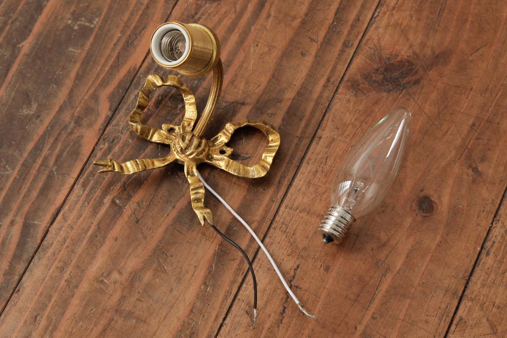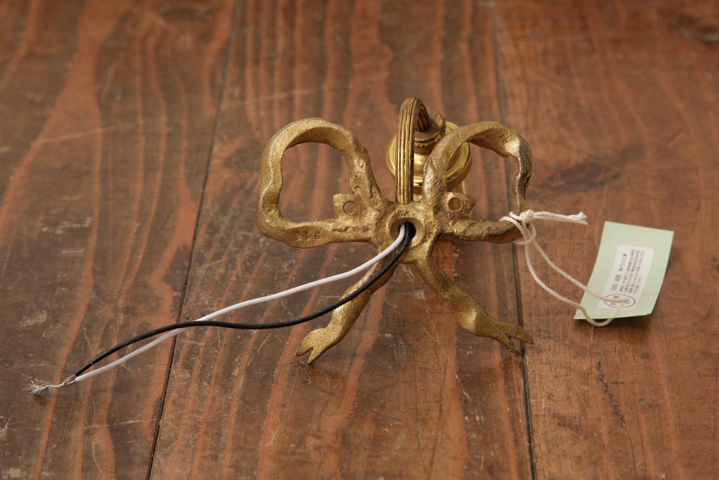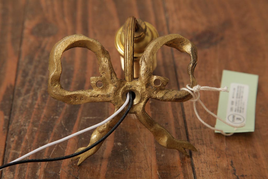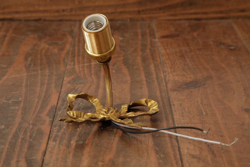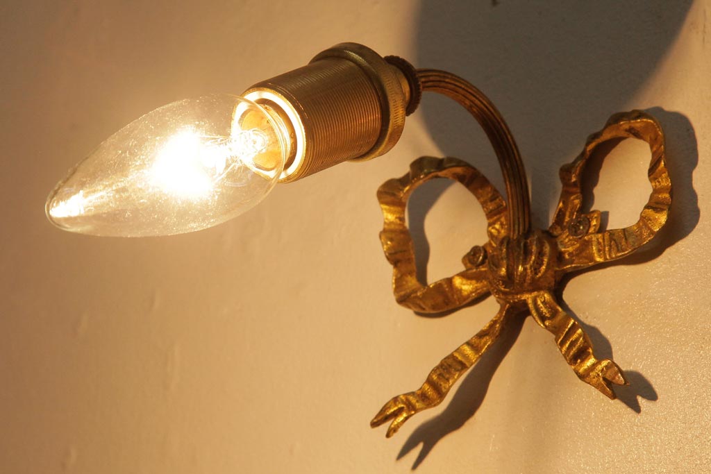 ヴィンテージ照明 フランスビンテージ 真鍮製 リボンが可愛らしい小さなウォールランプ(壁掛け照明、壁付け照明)(R-039084)