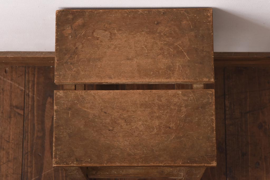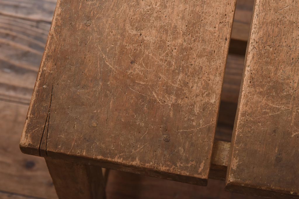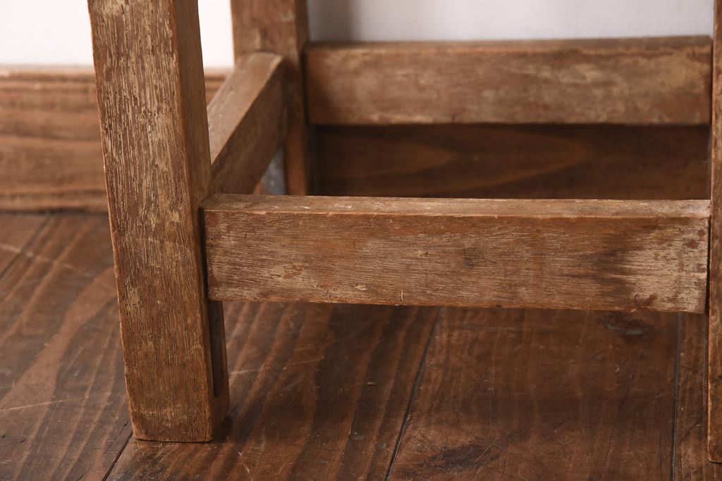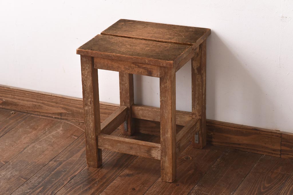 花台・飾り台 > レトロ家具 ナラ材 古い木の素朴な風合いがおしゃれな四角いスツール(板座チェア、花台、角スツール)(R-039226)