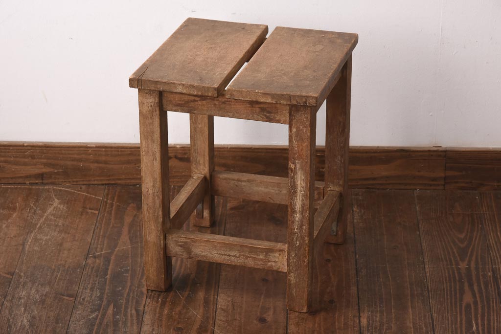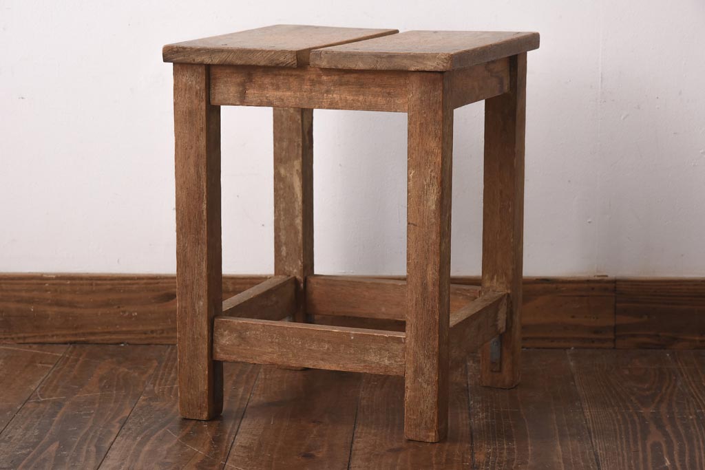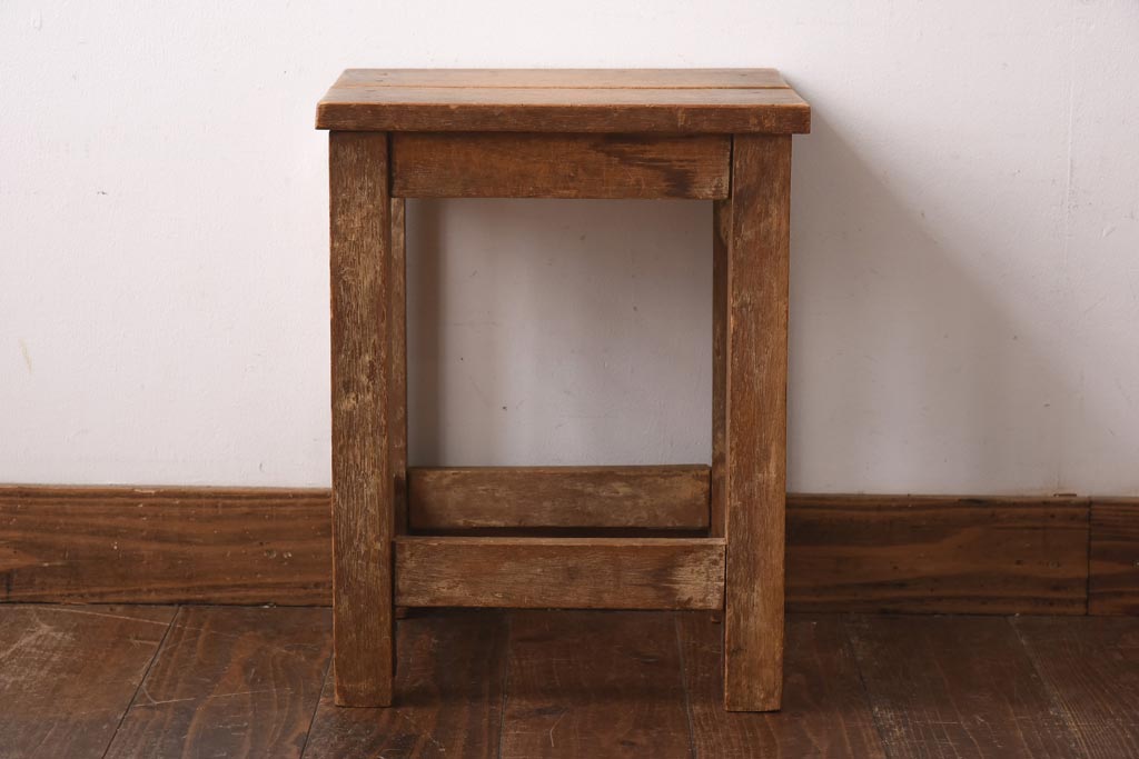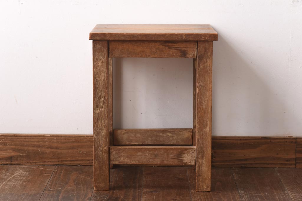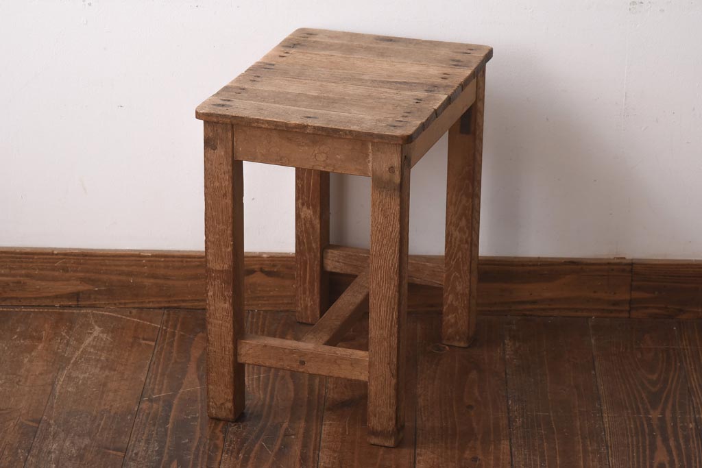 椅子・ベンチ> スツール > レトロ家具 ナラ材 古い木の素朴な風合いがおしゃれな四角いスツール(板座チェア、花台、角スツール)(R-039226)