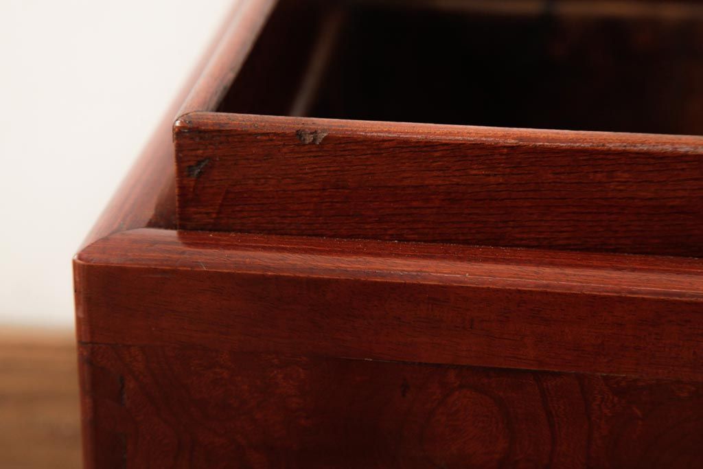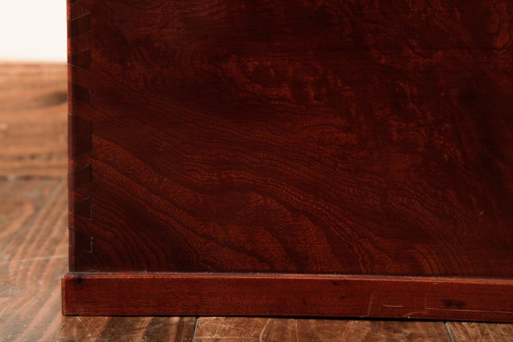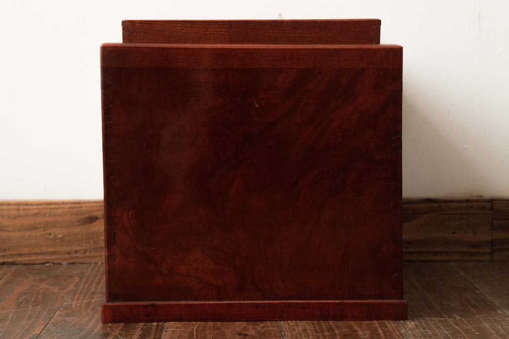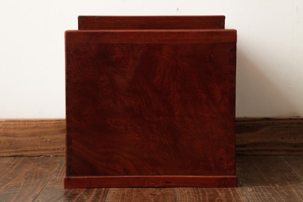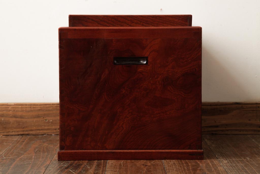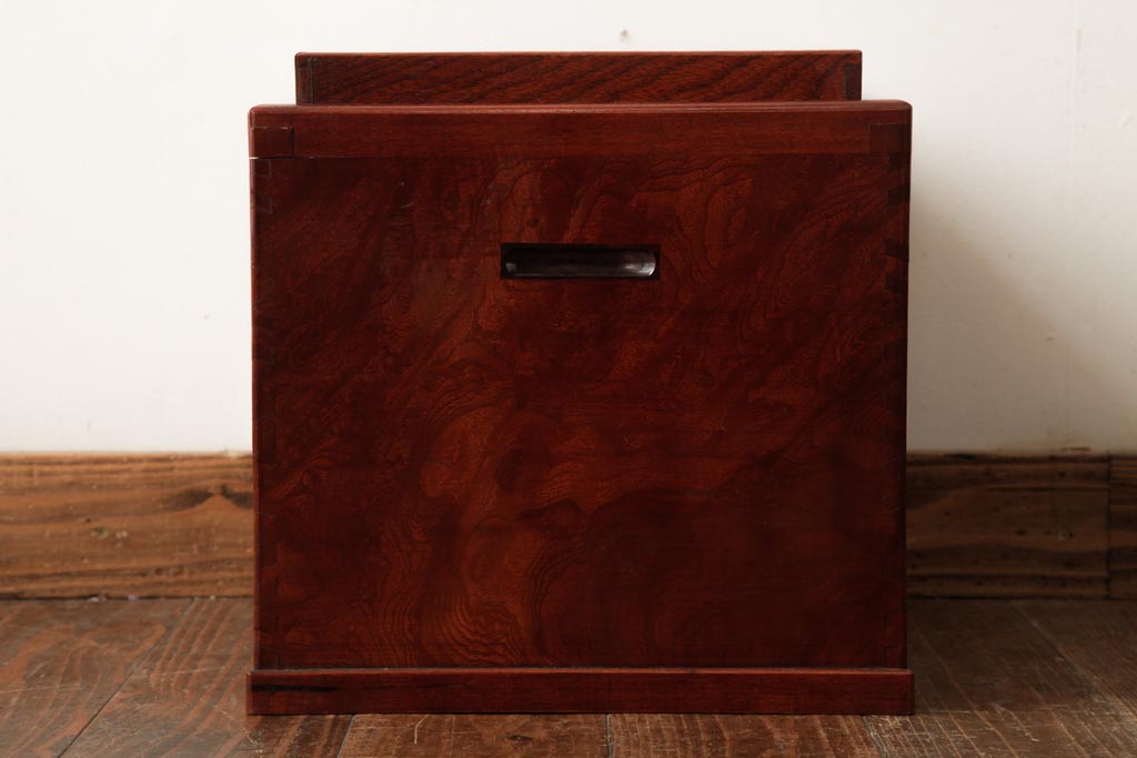 民芸家具 > アンティーク雑貨 指物家具 昭和初期 ケヤキ玉杢材 漆塗り 上手物!和の風情を堪能できる角火鉢(手あぶり、箱火鉢)(R-039254)