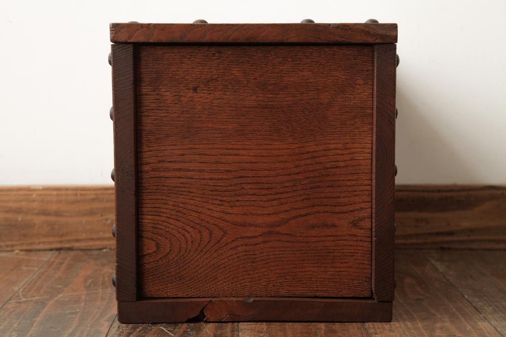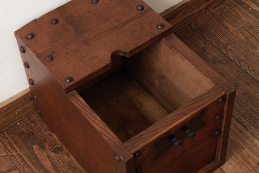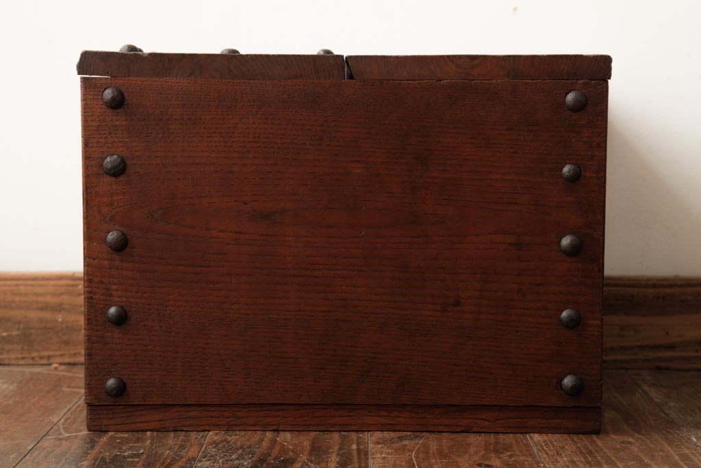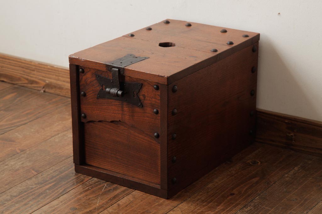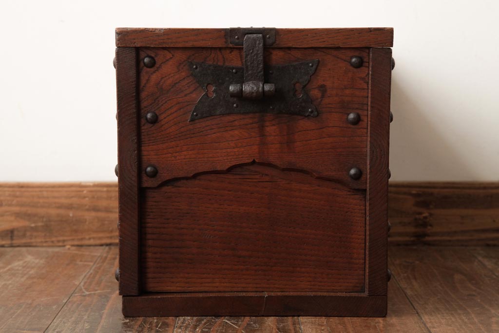 アンティーク雑貨 古民具・骨董 明治大正期 総栗材 金具が風格を漂わせる銭箱(銭函)(R-039267)です。