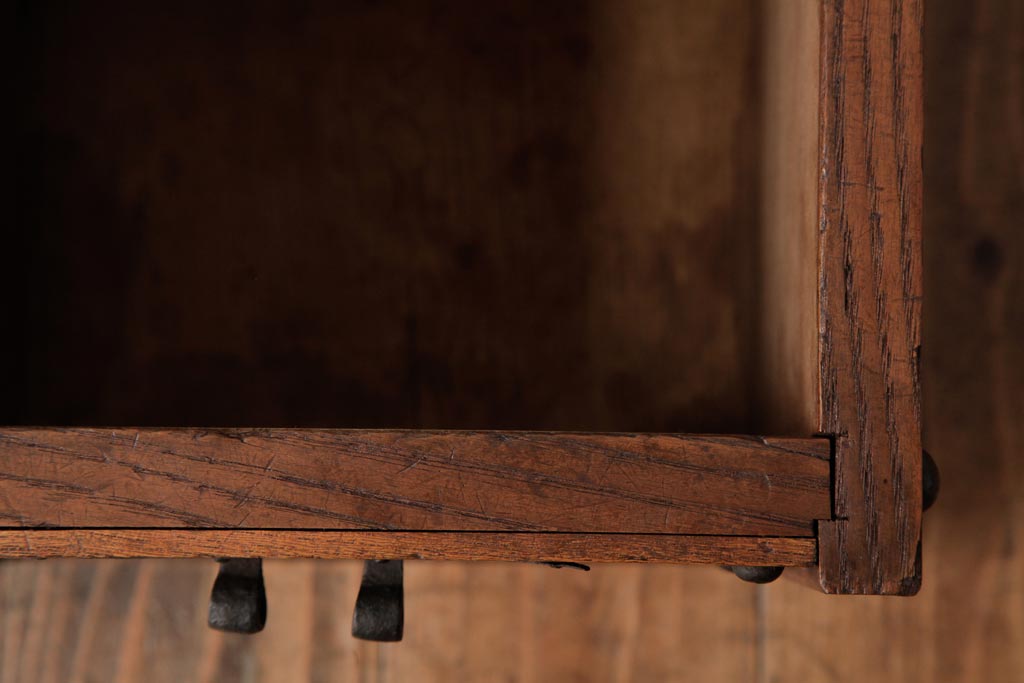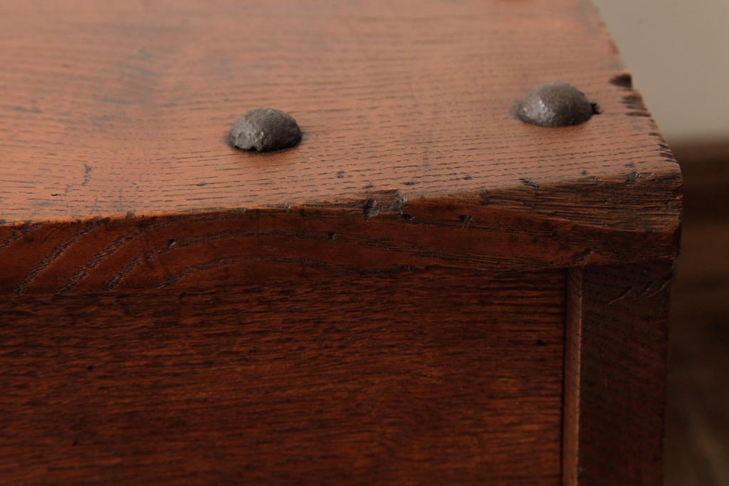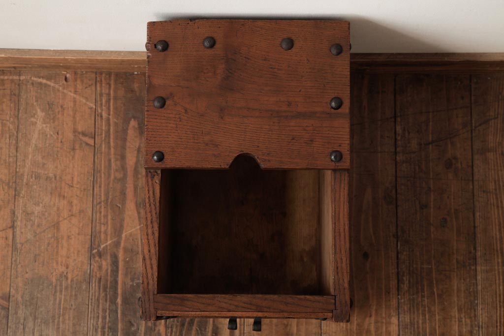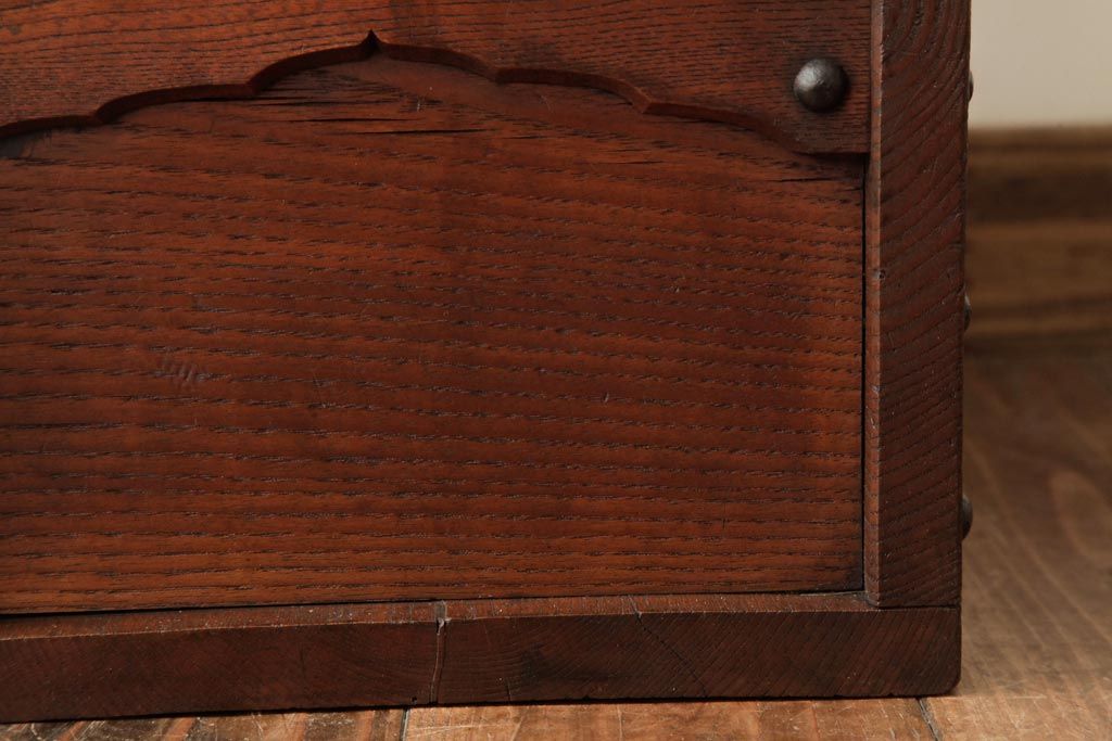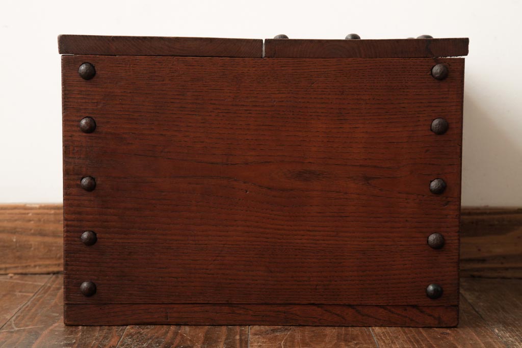 アンティーク雑貨 古民具・骨董 明治大正期 総栗材 金具が風格を漂わせる銭箱(銭函)(R-039267)です。