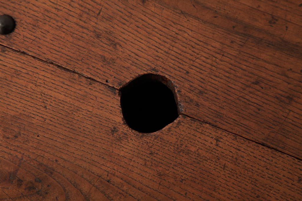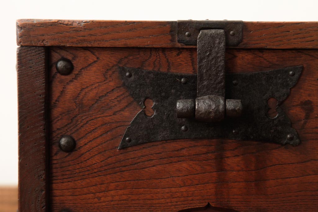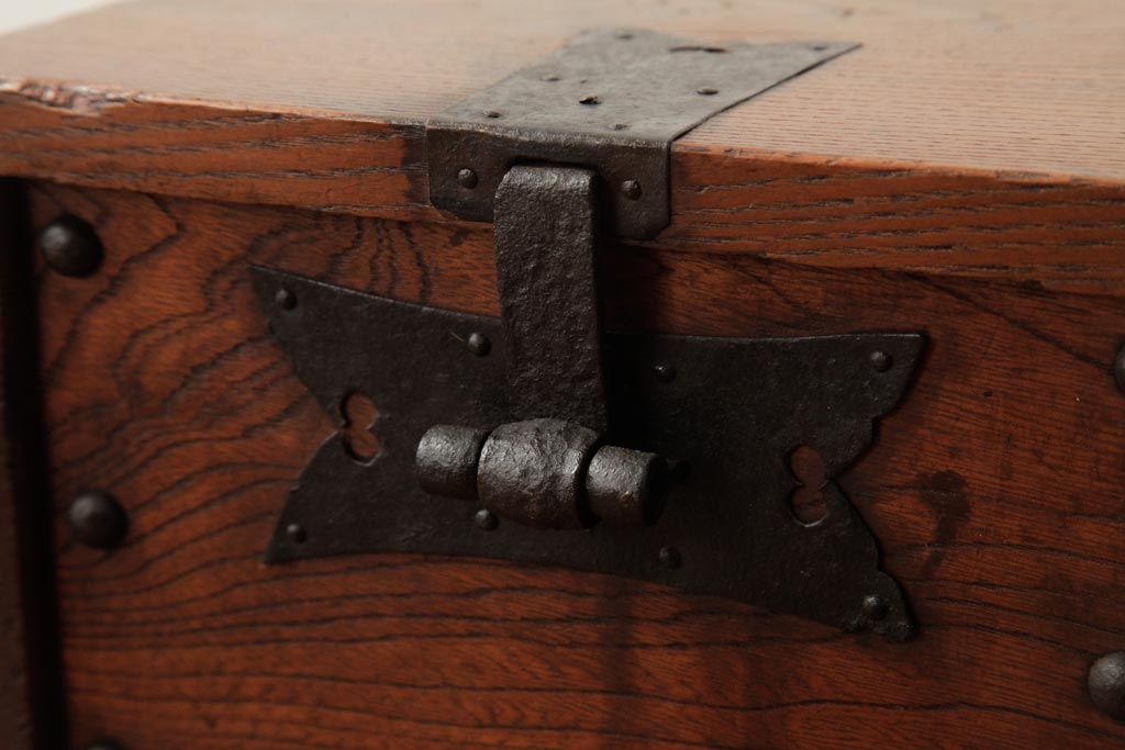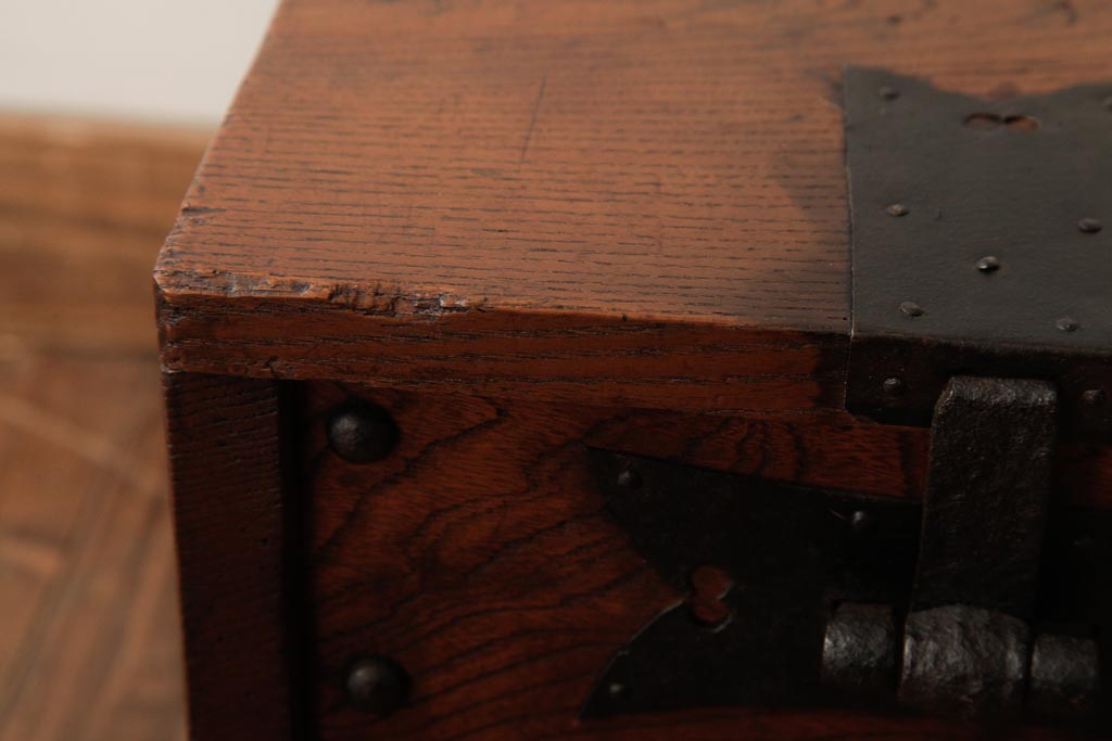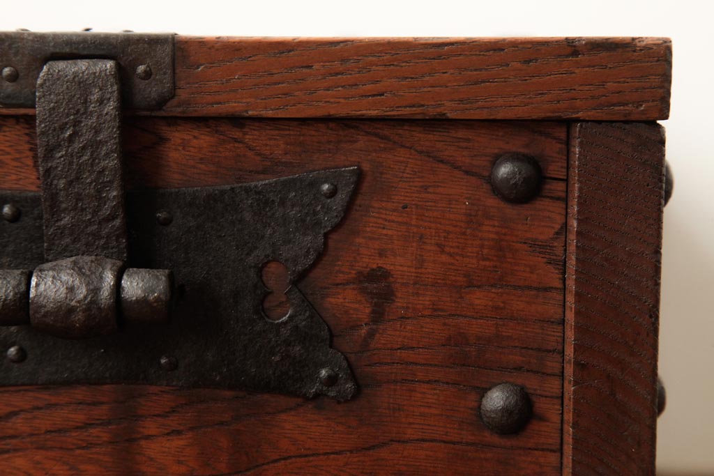 骨董・美術品 > アンティーク雑貨 古民具・骨董 明治大正期 総栗材 金具が風格を漂わせる銭箱(銭函)(R-039267)