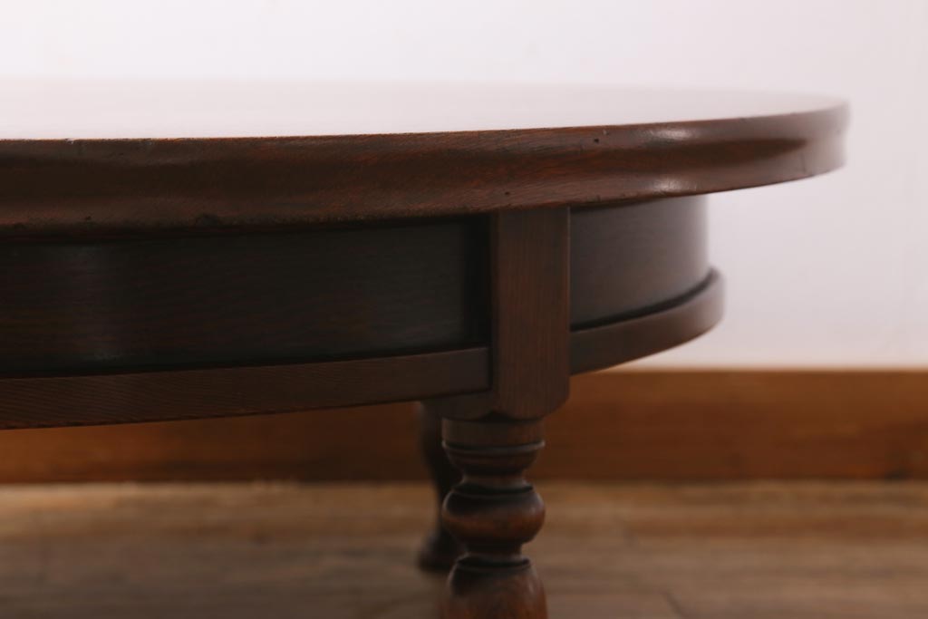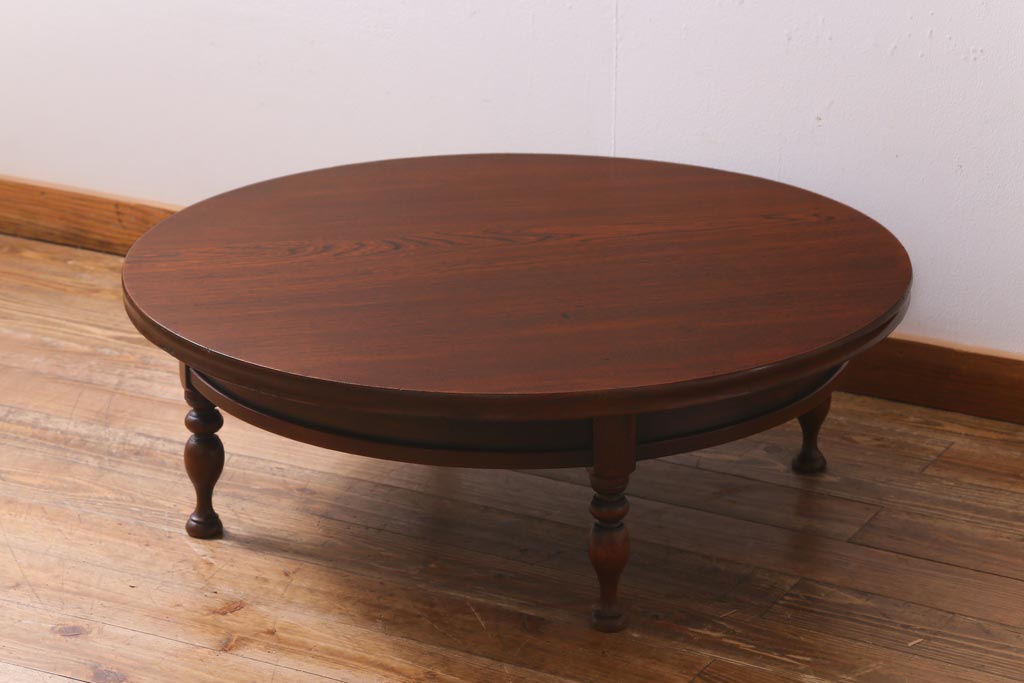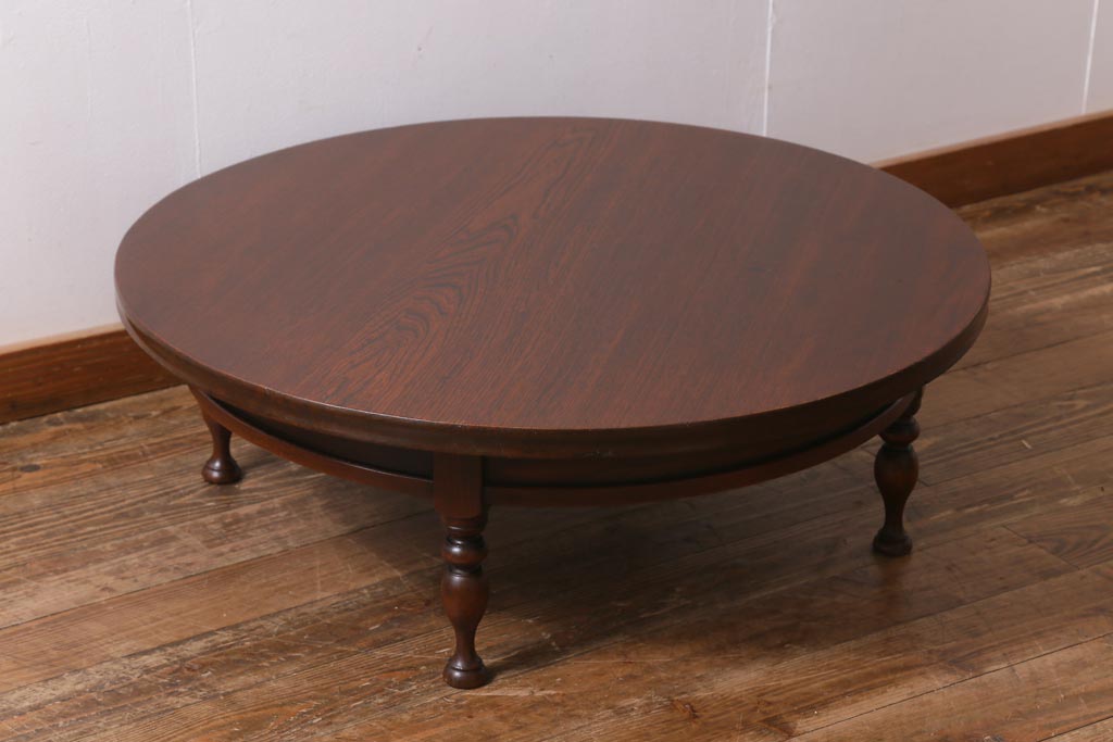 テーブル> 座卓 > アンティーク家具 和製アンティーク 大正昭和初期 栓材 上手物!上品な挽き物加工の脚が魅力な丸テーブル(座卓、ローテーブル)(R-039265)