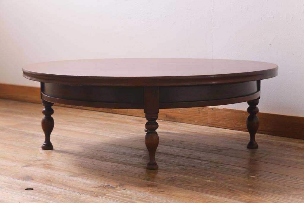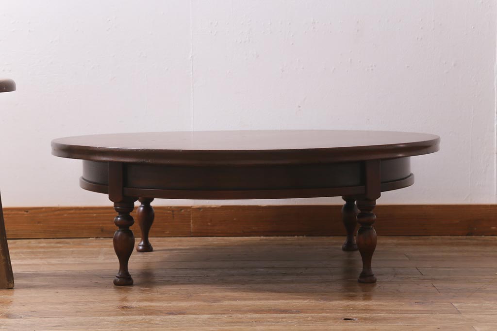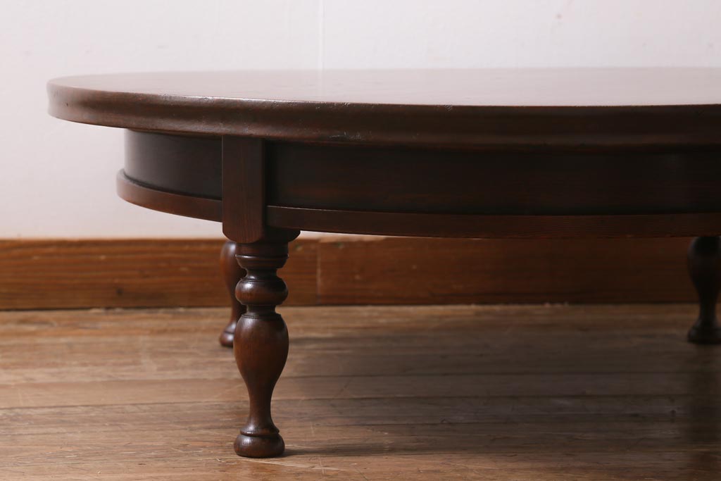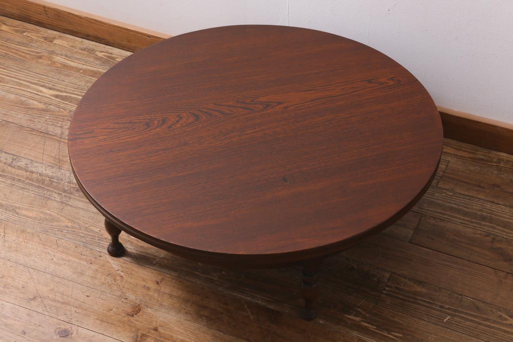 アンティーク家具 和製アンティーク 大正昭和初期 栓材 上手物!上品な挽き物加工の脚が魅力な丸テーブル(座卓、ローテーブル)(R-039265)