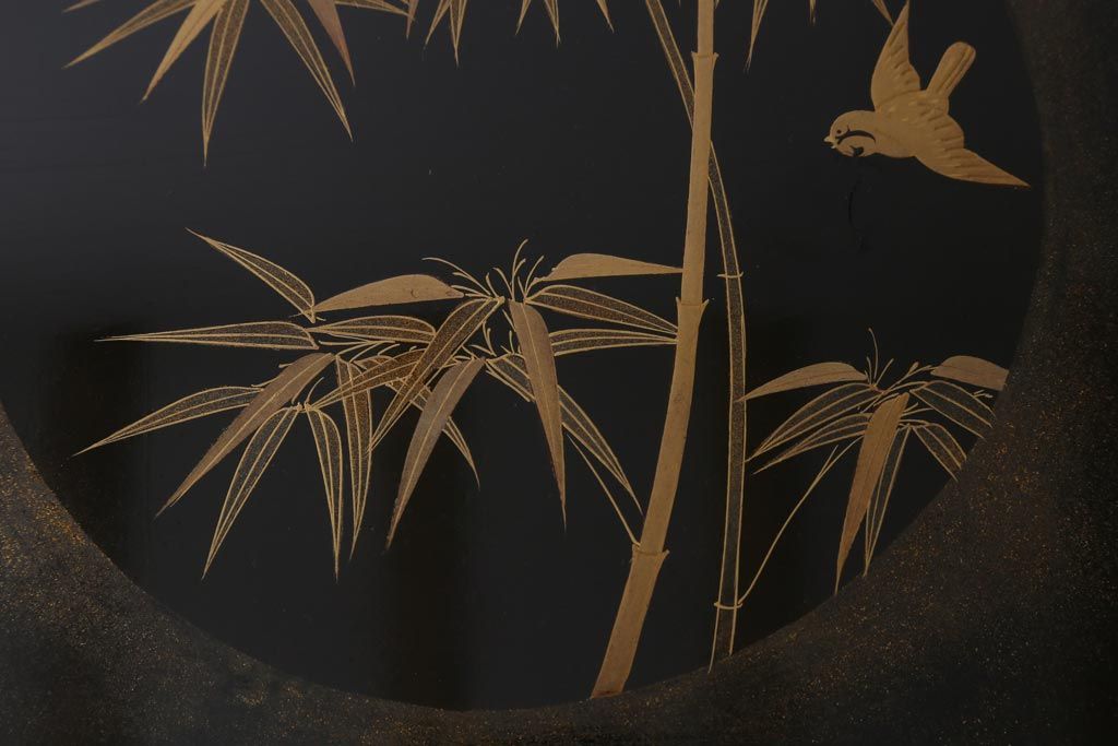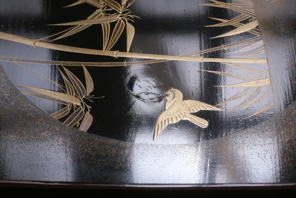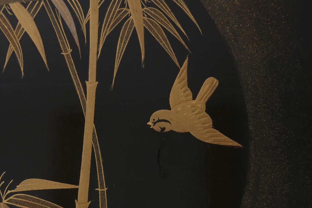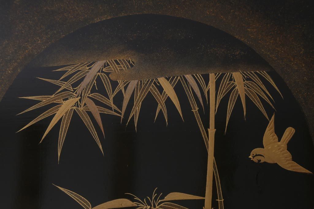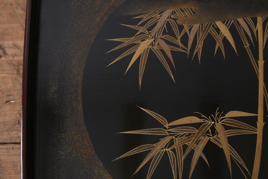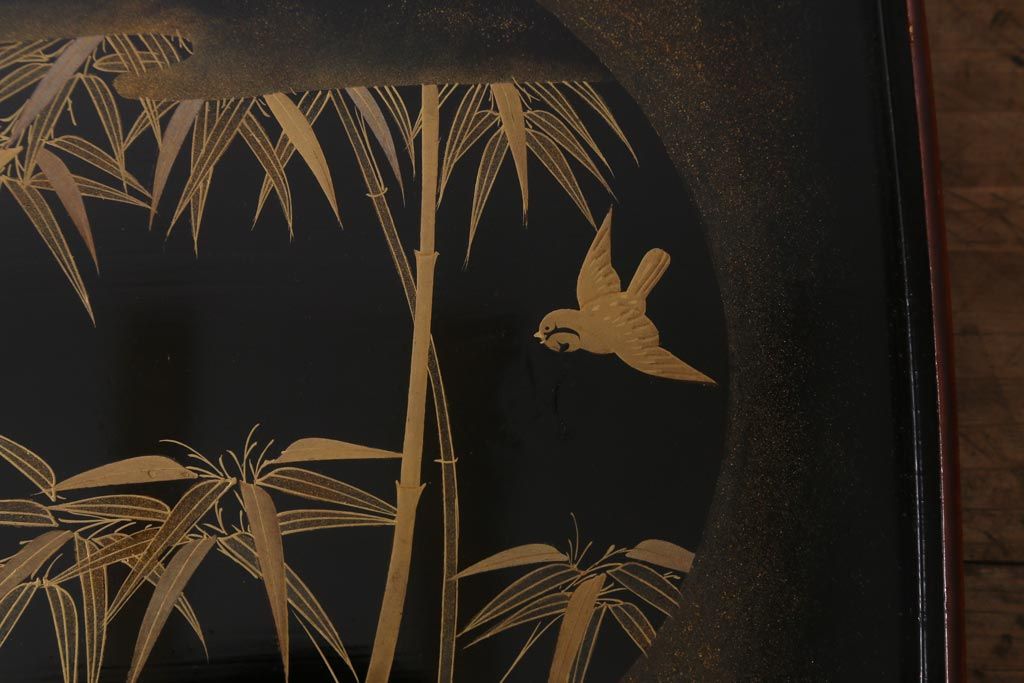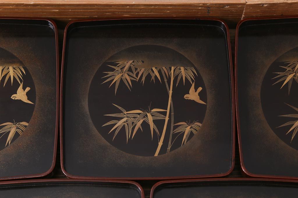 ラフジュ工房> 骨董・美術品> 骨董-漆器 > アンティーク雑貨 時代物 大正昭和初期 蒔絵 竹と雀図 漆器 角盆5枚セット(R-039111)